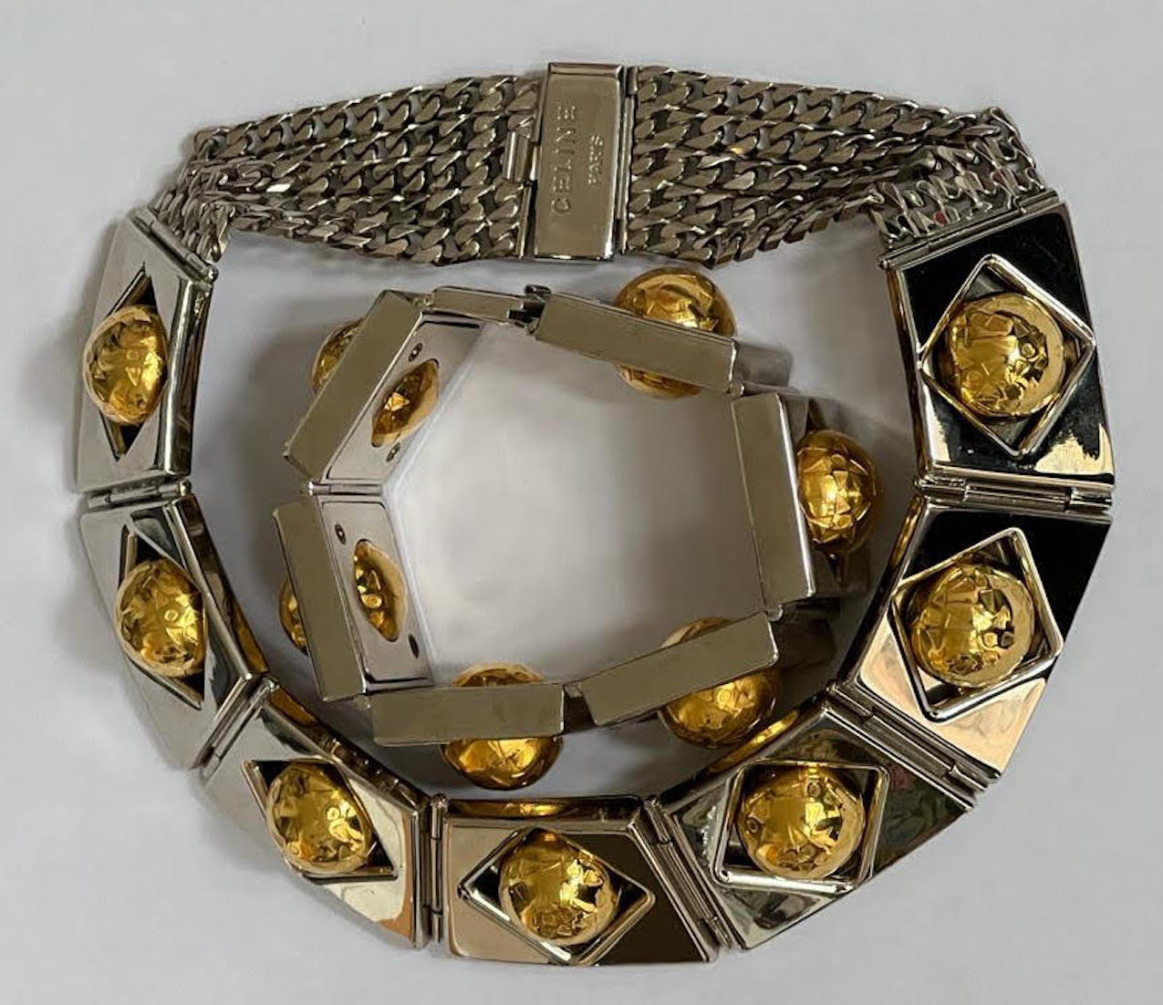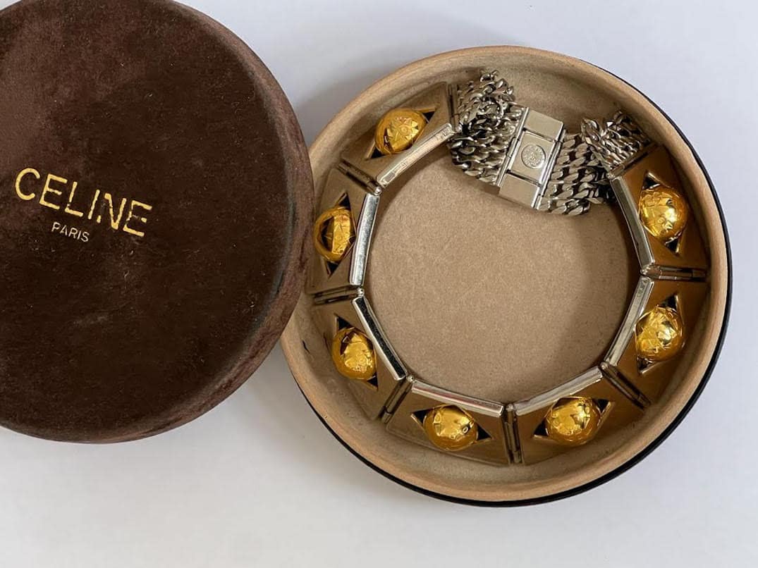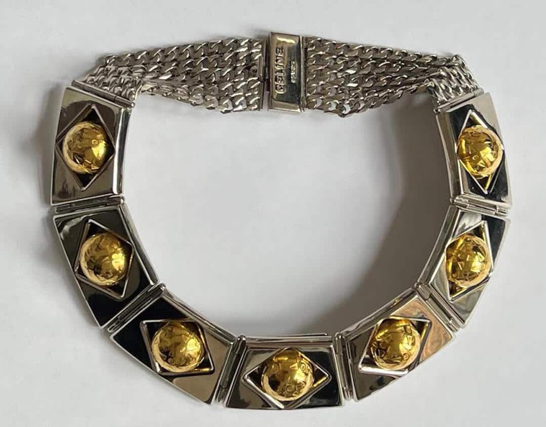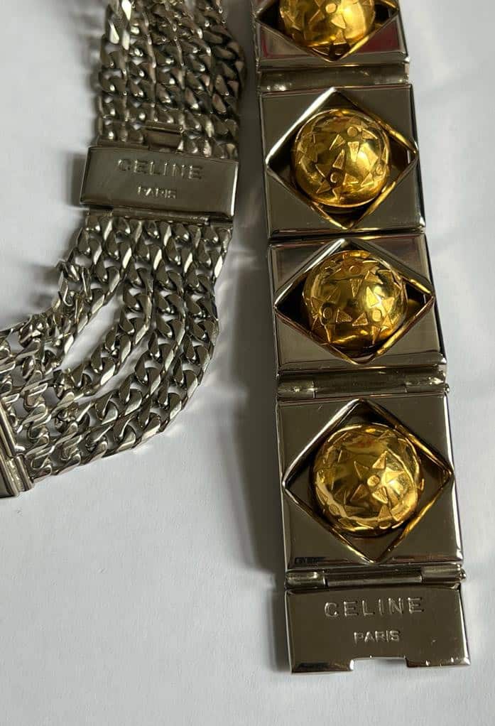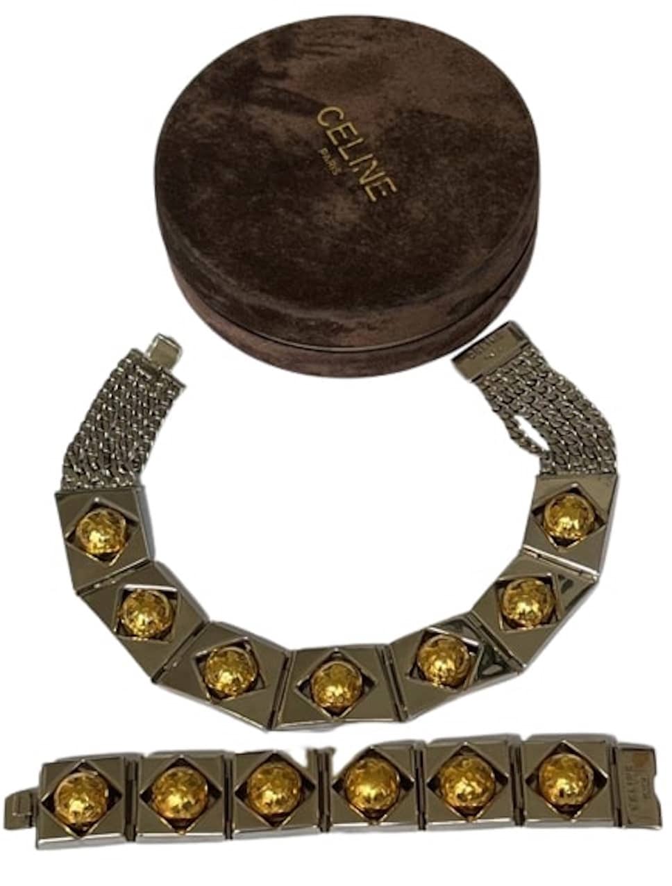 CÉLINE PARIS Vintage Sphere Necklace & Bracelet Two Tone Set 1989 W/Box