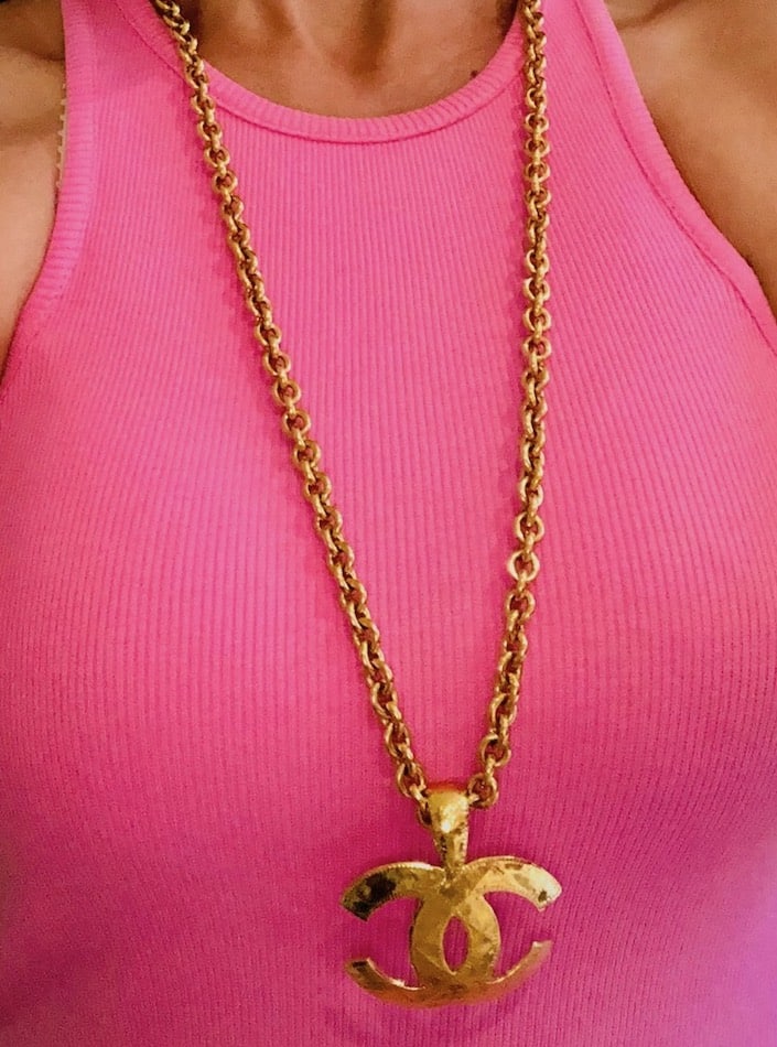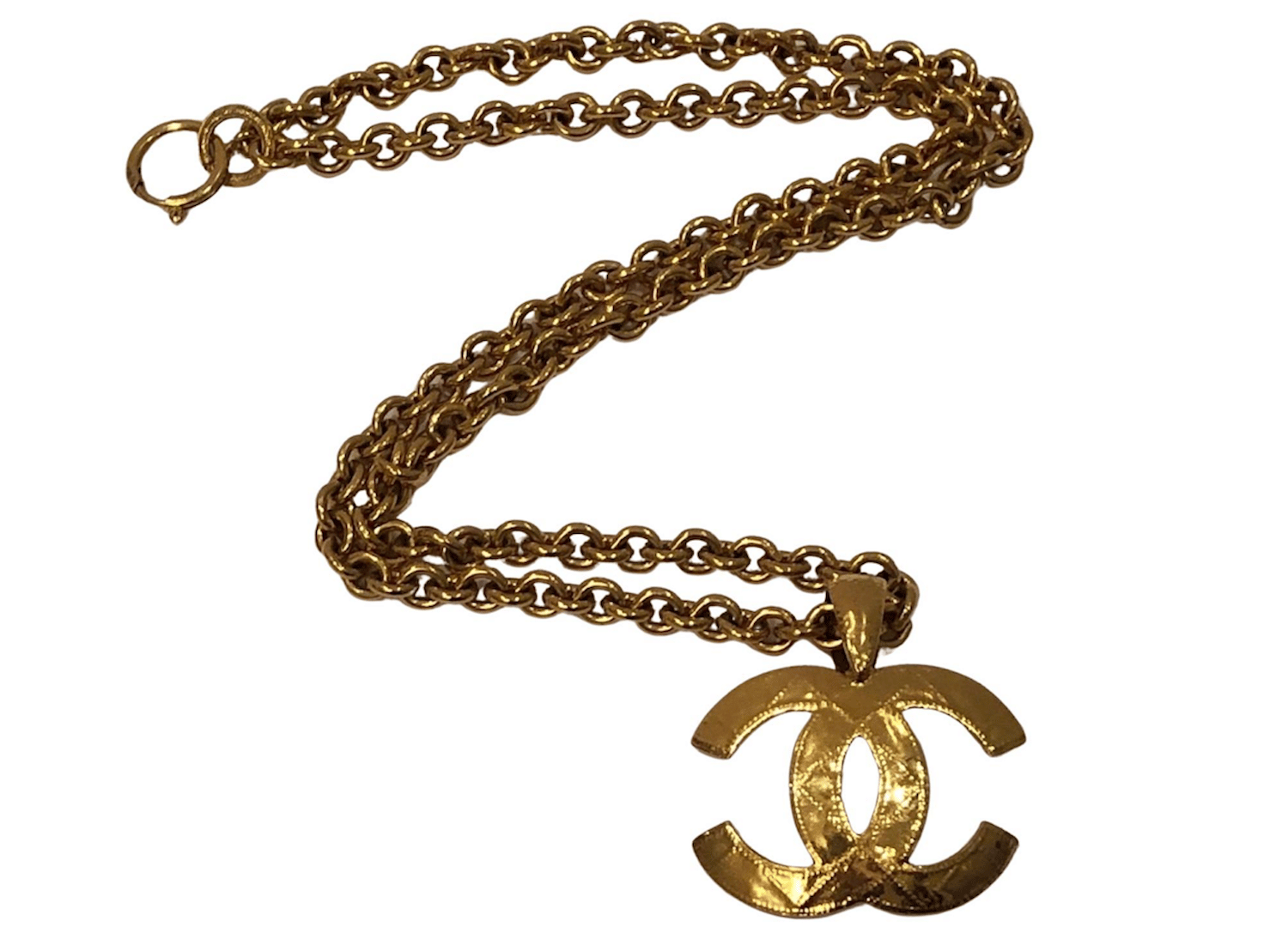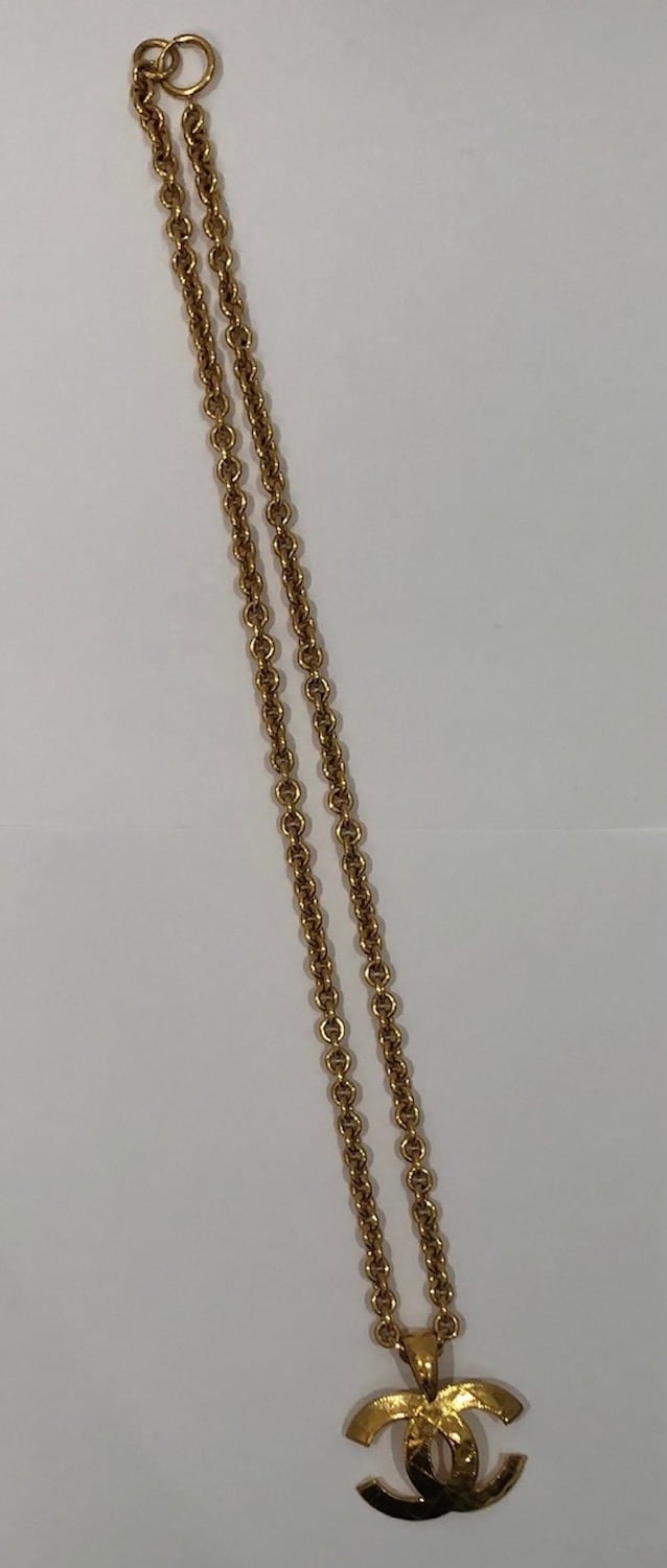 CHANEL 1994 CC Pendant Chain Necklace Vintage Gold Quilted