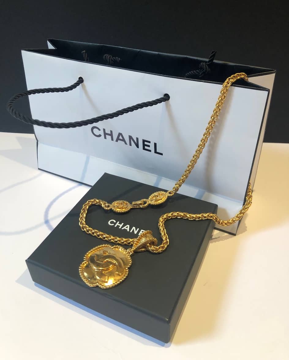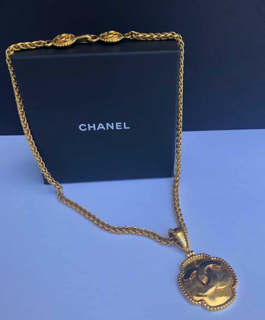 CHANEL 1996 Medallion Pendant CC logo Gold Chain Necklace Vintage W/Box