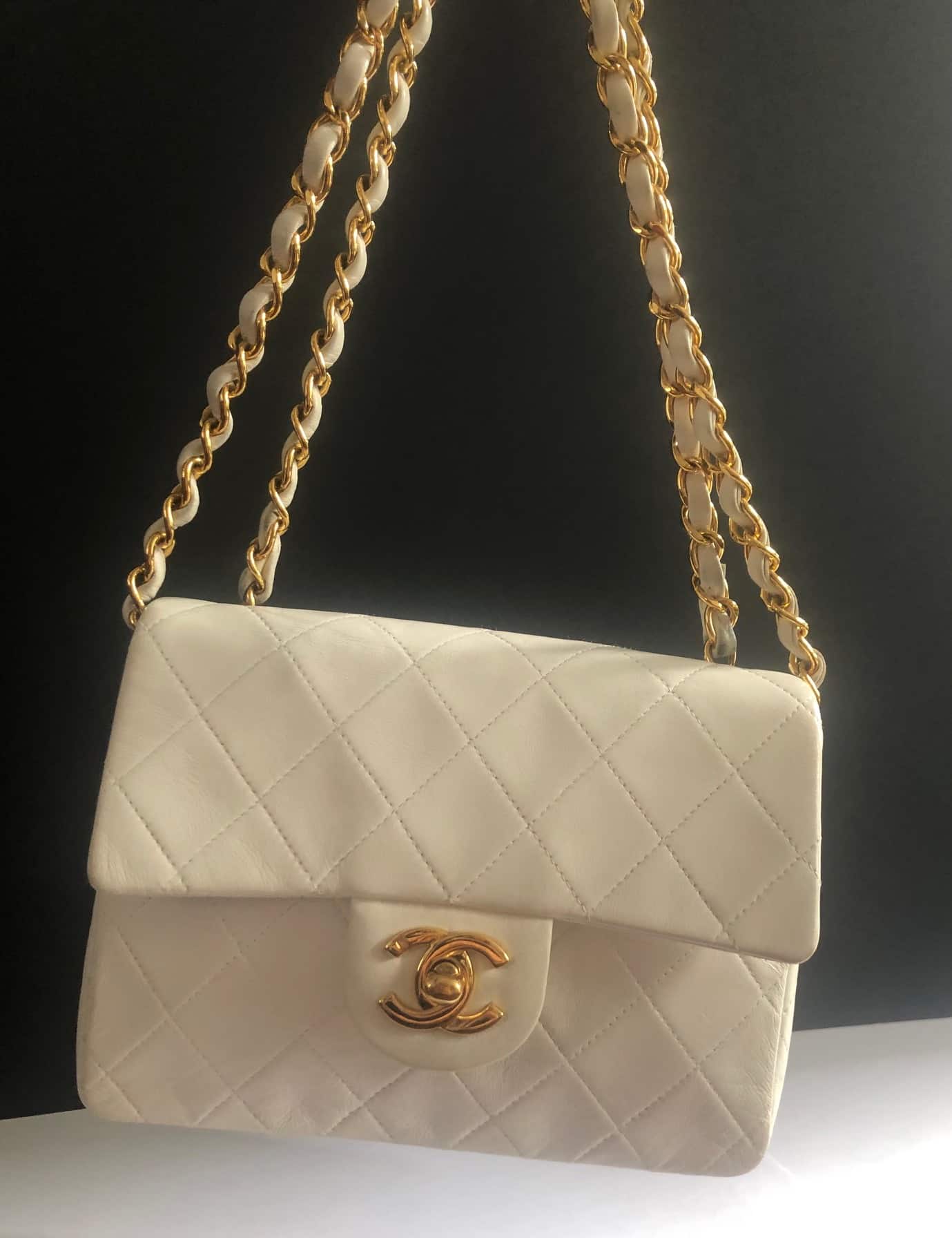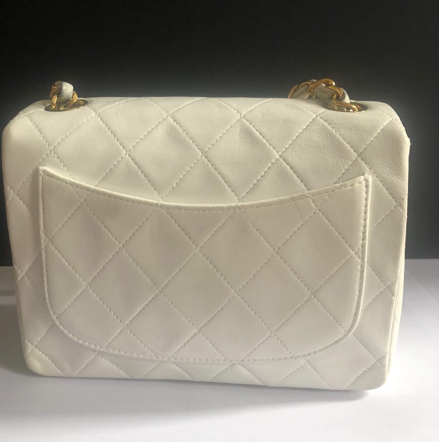 CHANEL 1997 White Lambskin Mini Square Quilted Classic Vintage Flap Bag W/Box