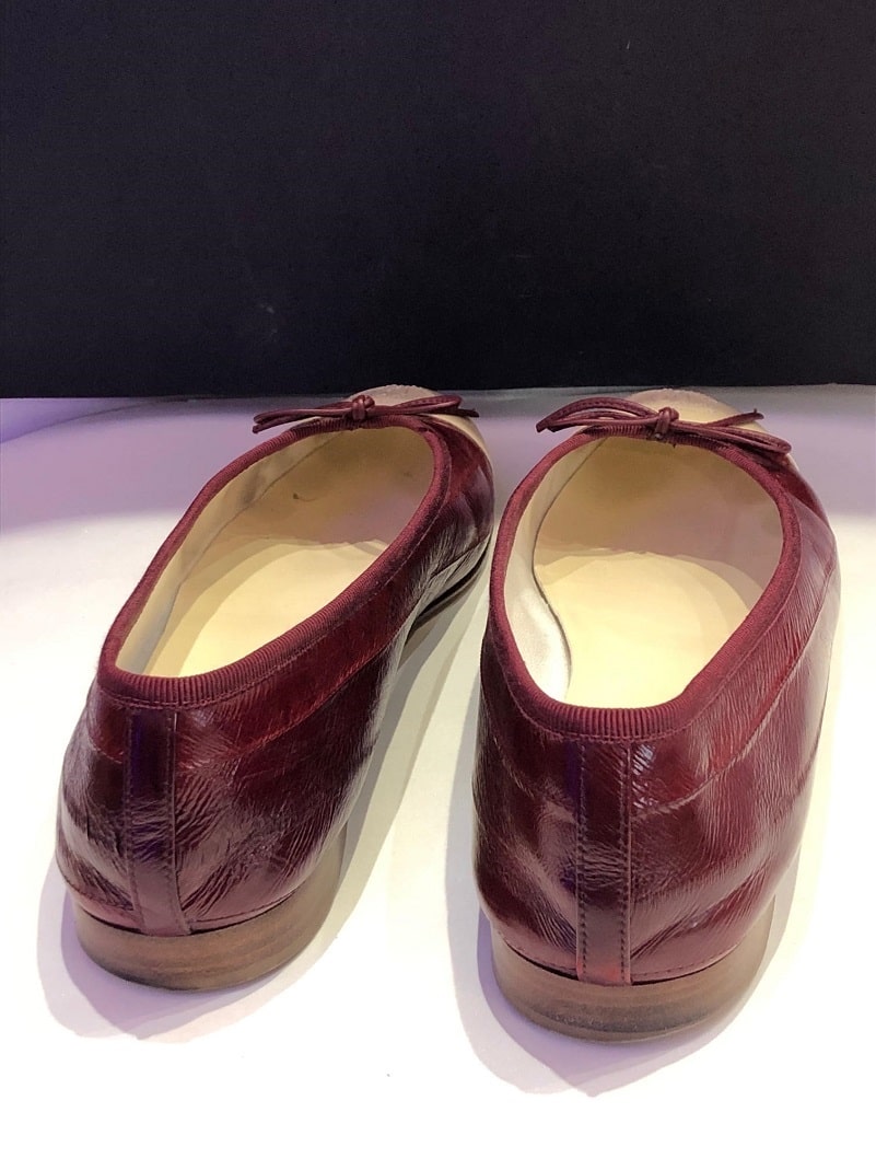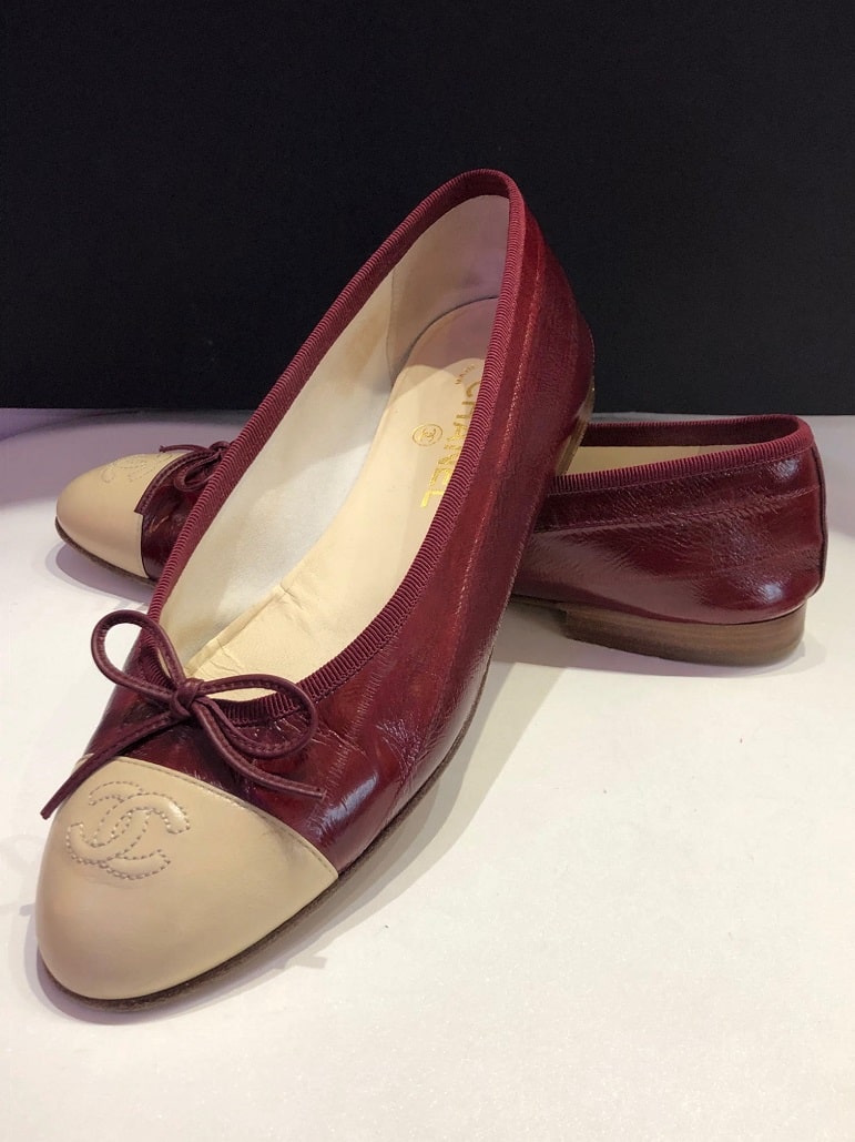 CHANEL Ballerina Flats Ballet Burgundy & Beige Leather Rare