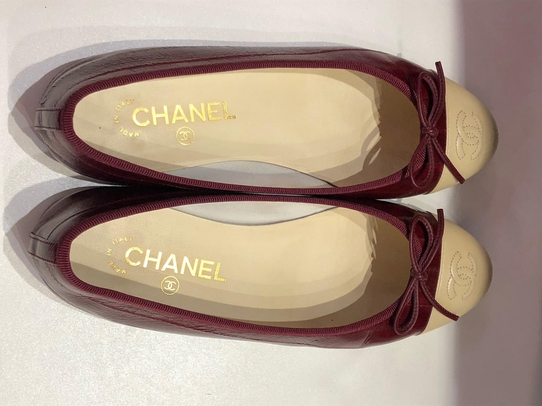 CHANEL Ballerina Flats Ballet Burgundy & Beige Leather Rare CVC18040266-CUK82