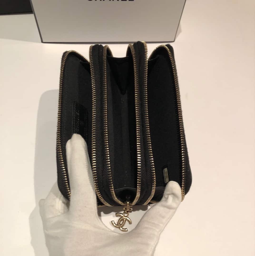 CHANEL Black Gold Crystal Embellished Swarovski Leather Triple Zip Wallet 2014-2015