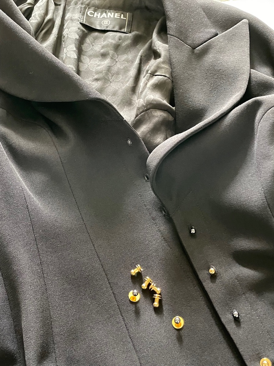 CHANEL Black Two Piece Suit Trousers & Fitted Jacket Autumn 2002