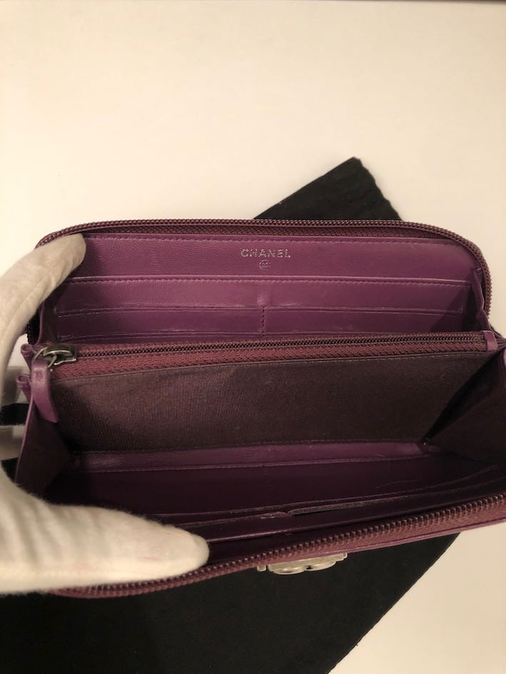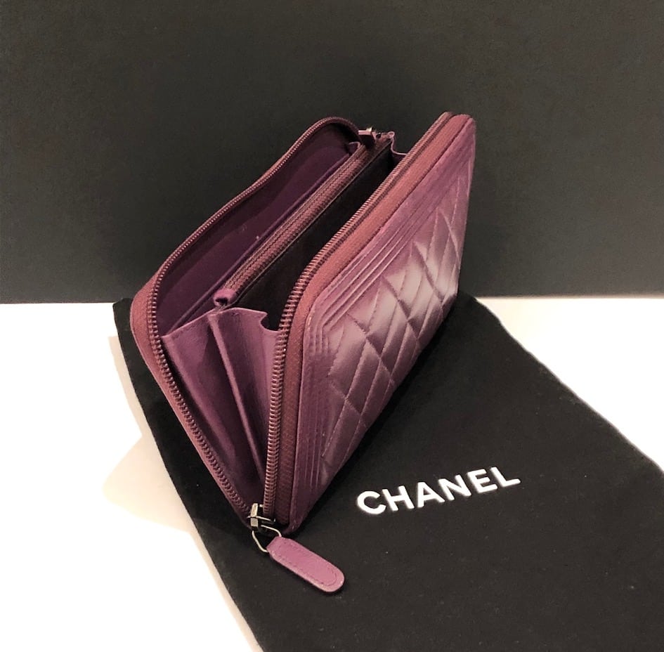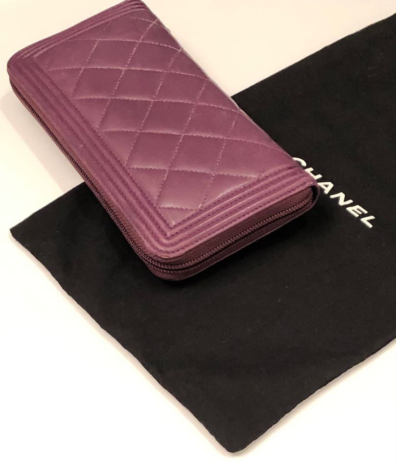CHANEL Boy Long Wallet Quilted Purple Lambskin Clutch