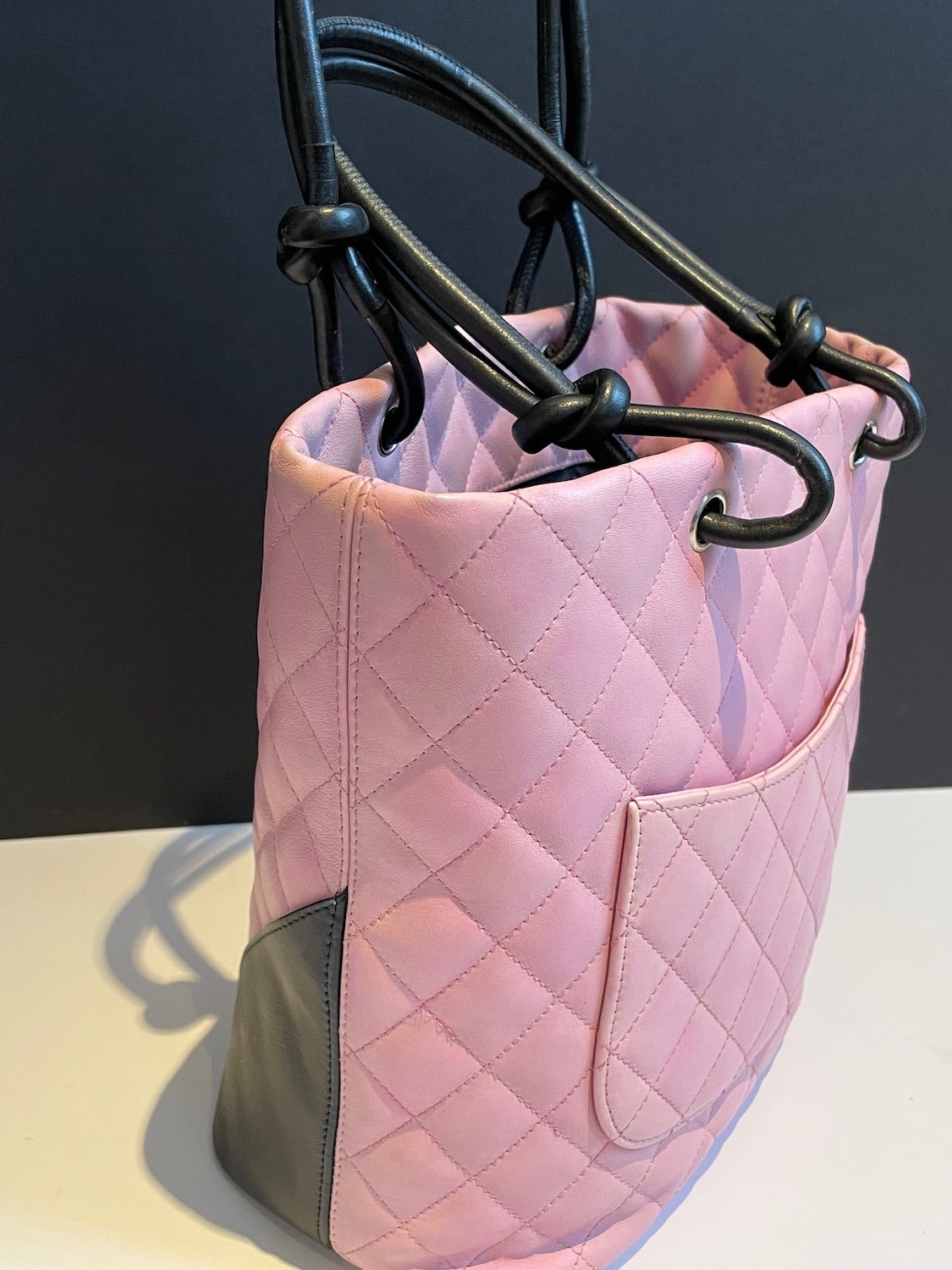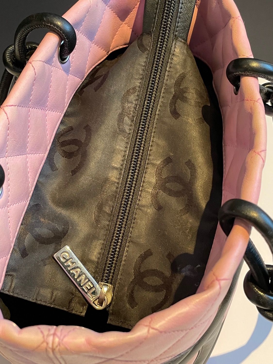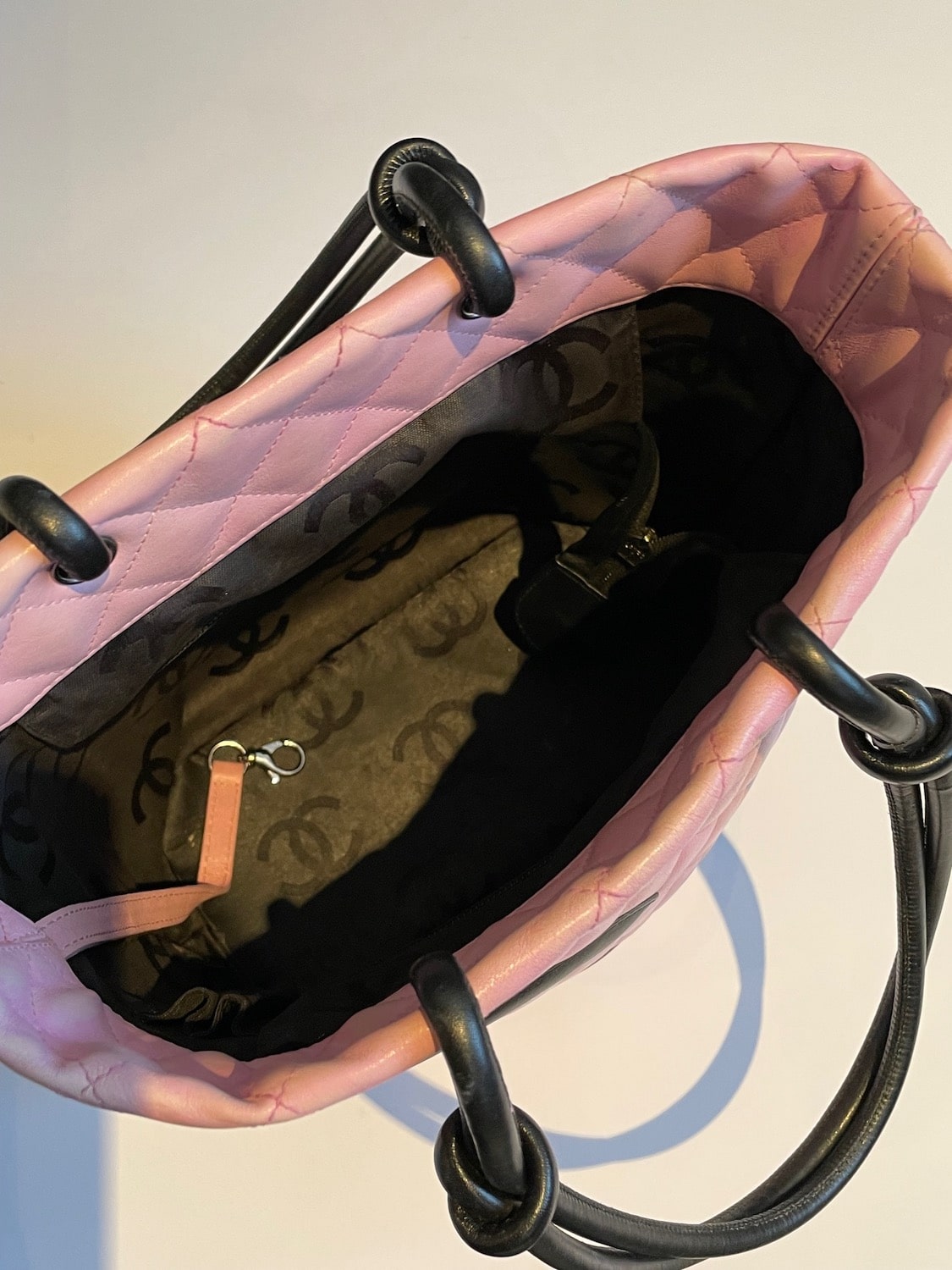 CHANEL CC Cambon Tote Pink Black Quilted Leather Bag C.2004-2005