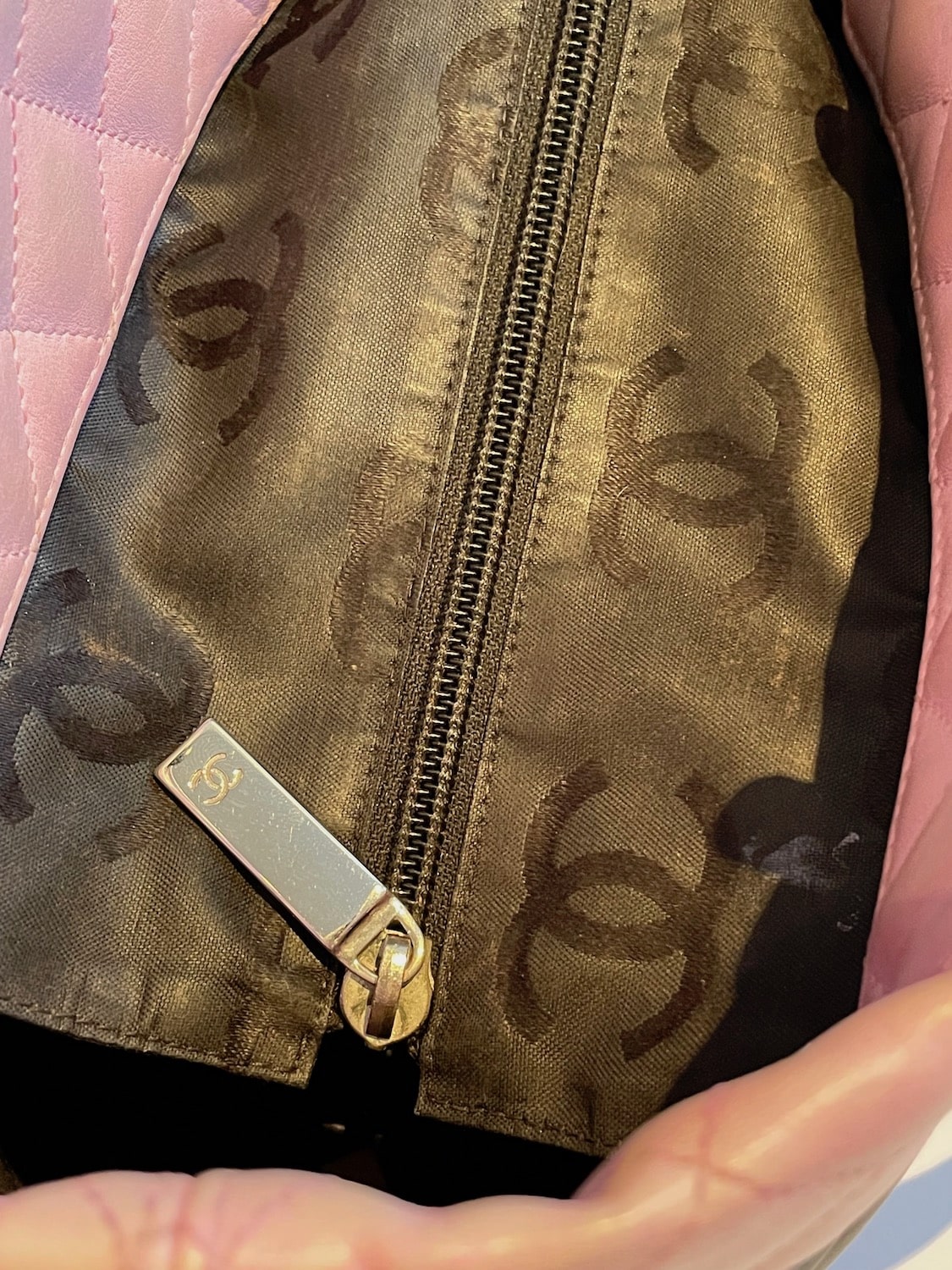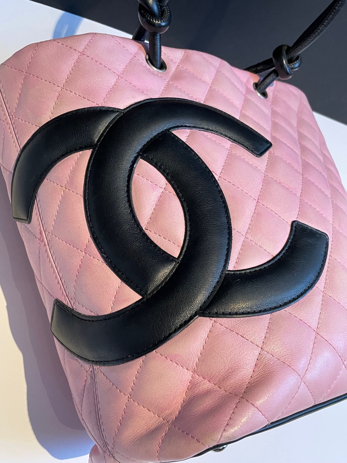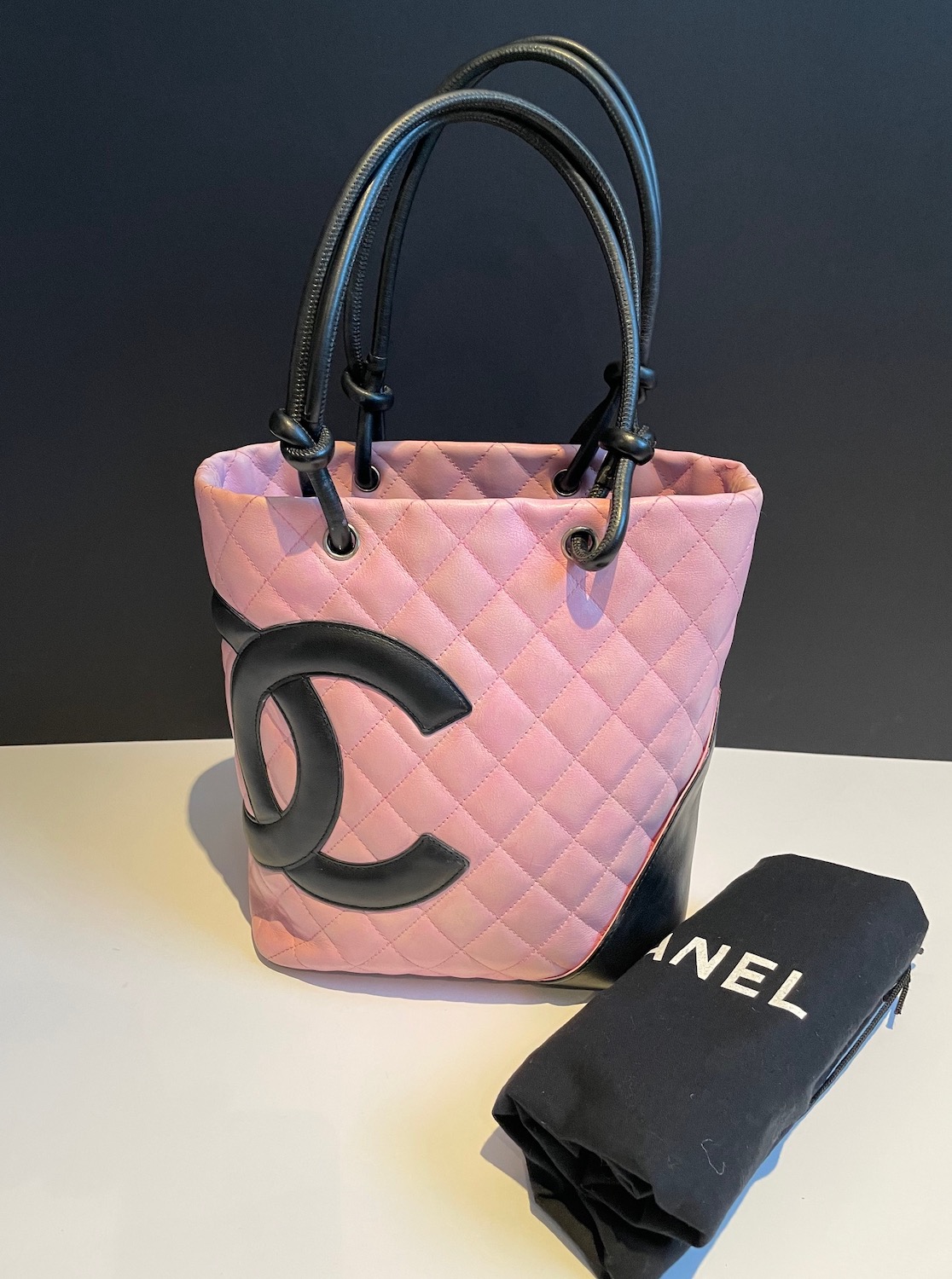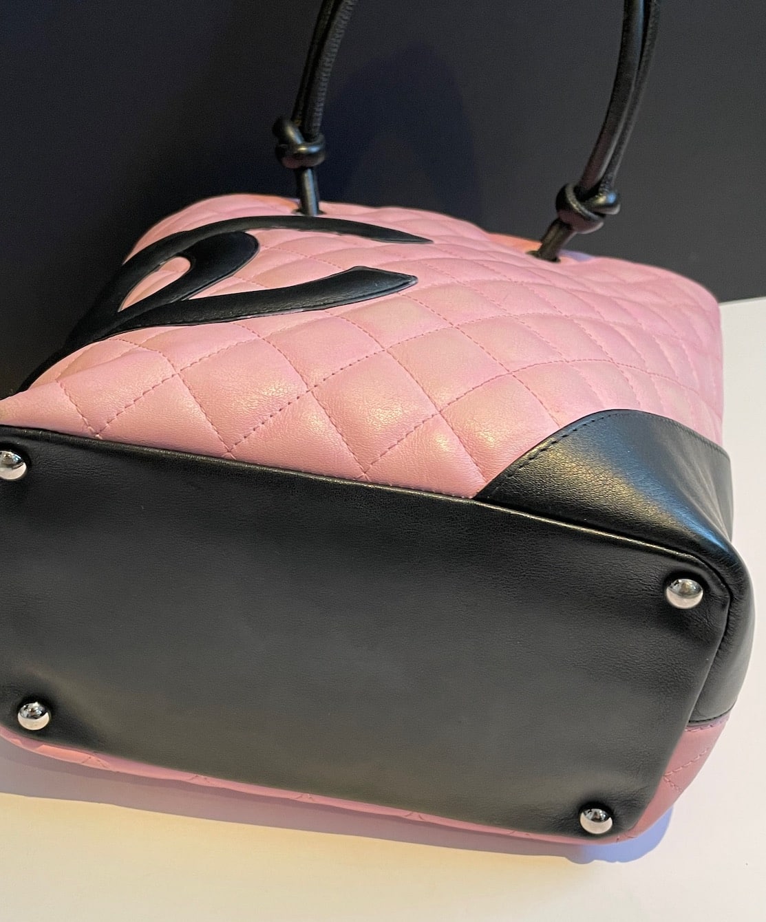 CHANEL CC Cambon Tote Pink Black Quilted Leather Bag C.2004-2005