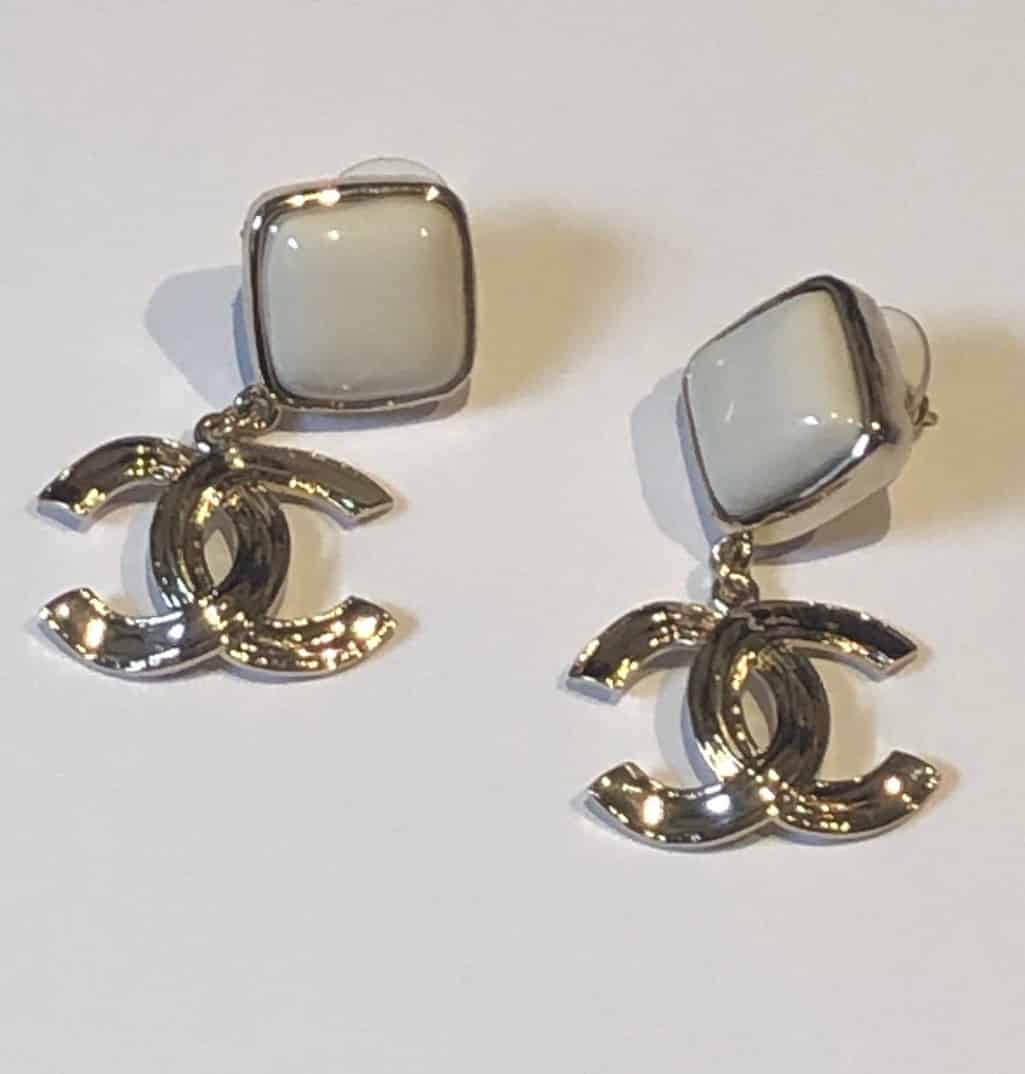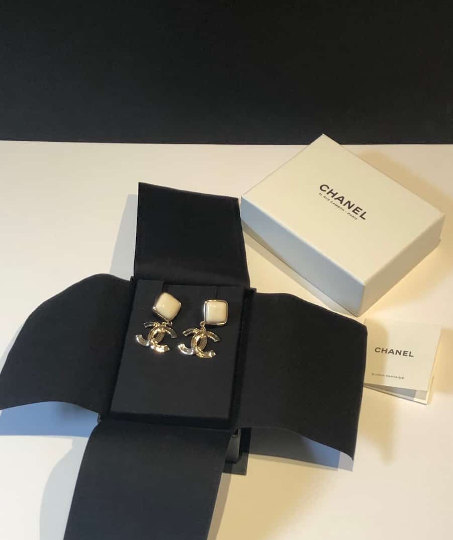 CHANEL CC Drop Earrings Gold & Cream
