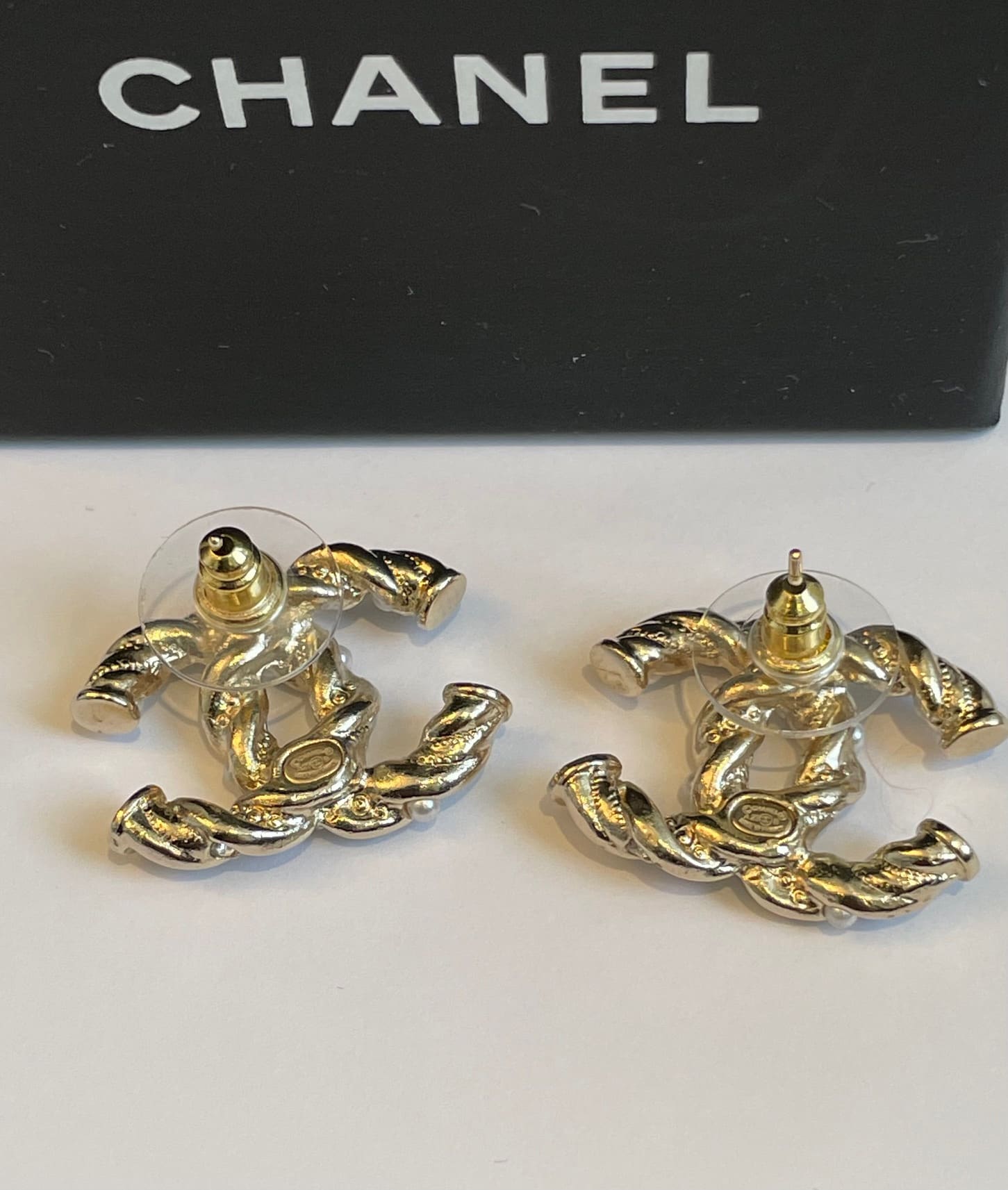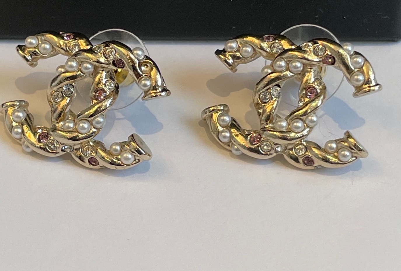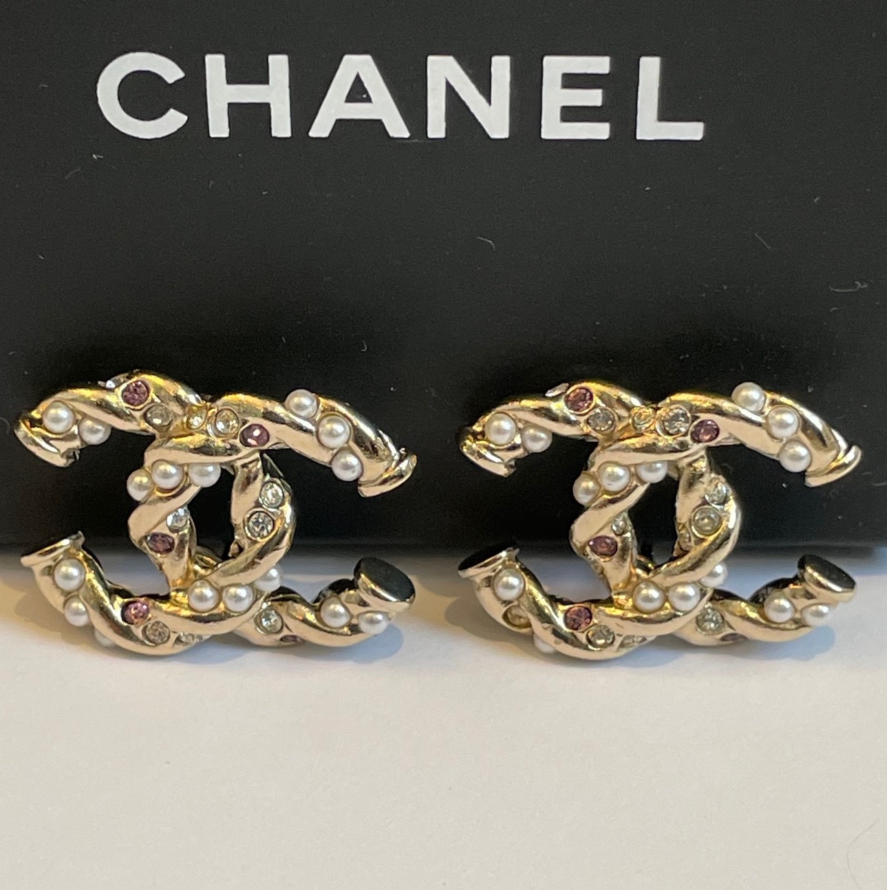 CHANEL CC Logo Pierce Earrings Crystals & Pearl Earrings
