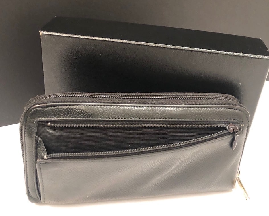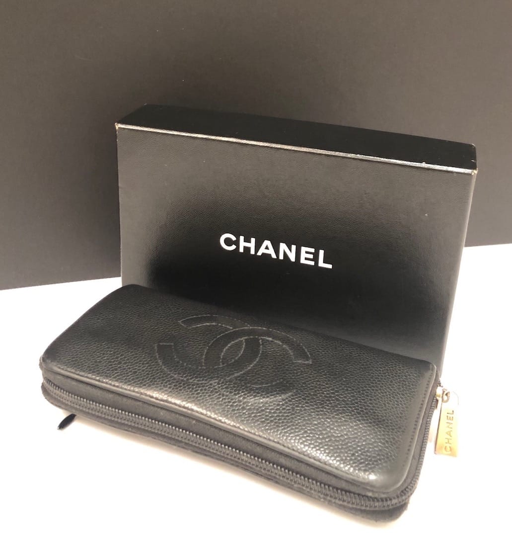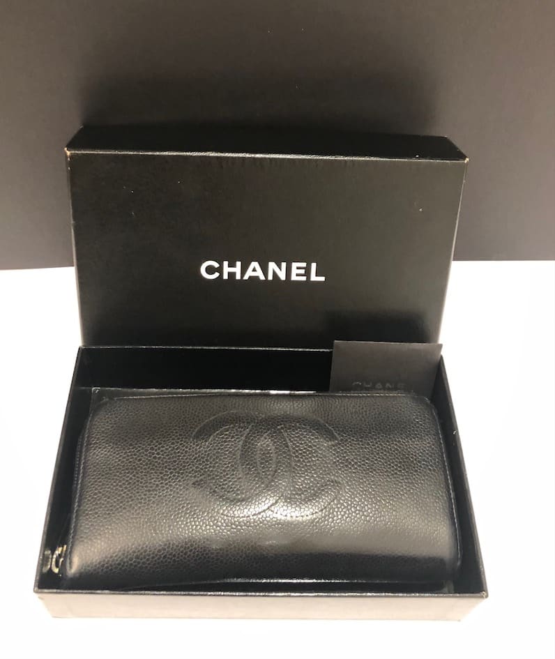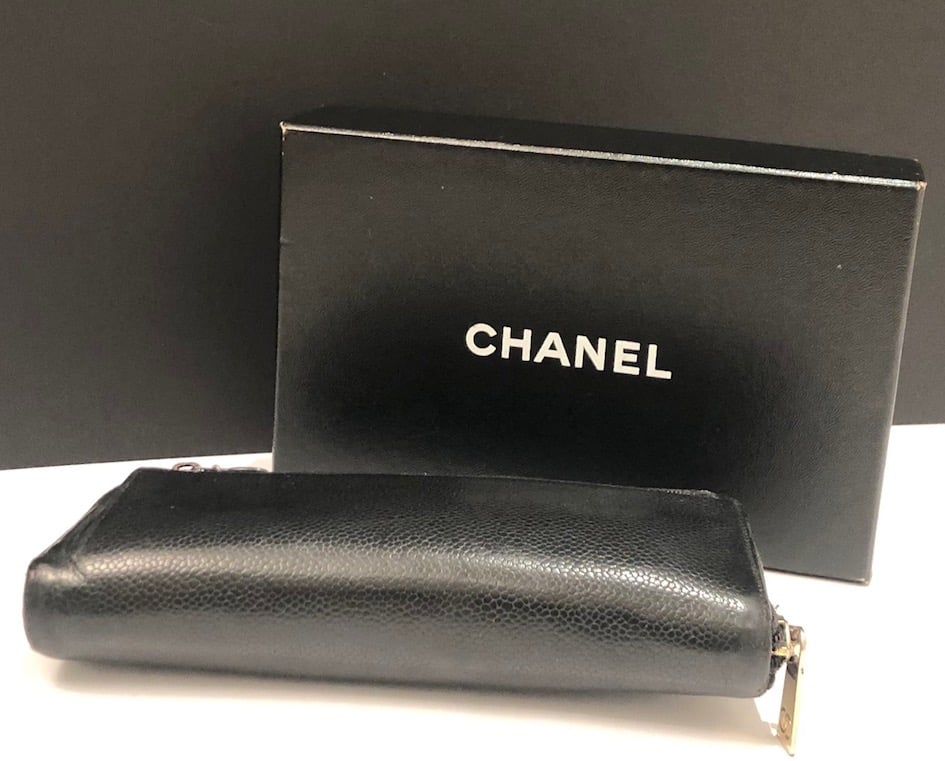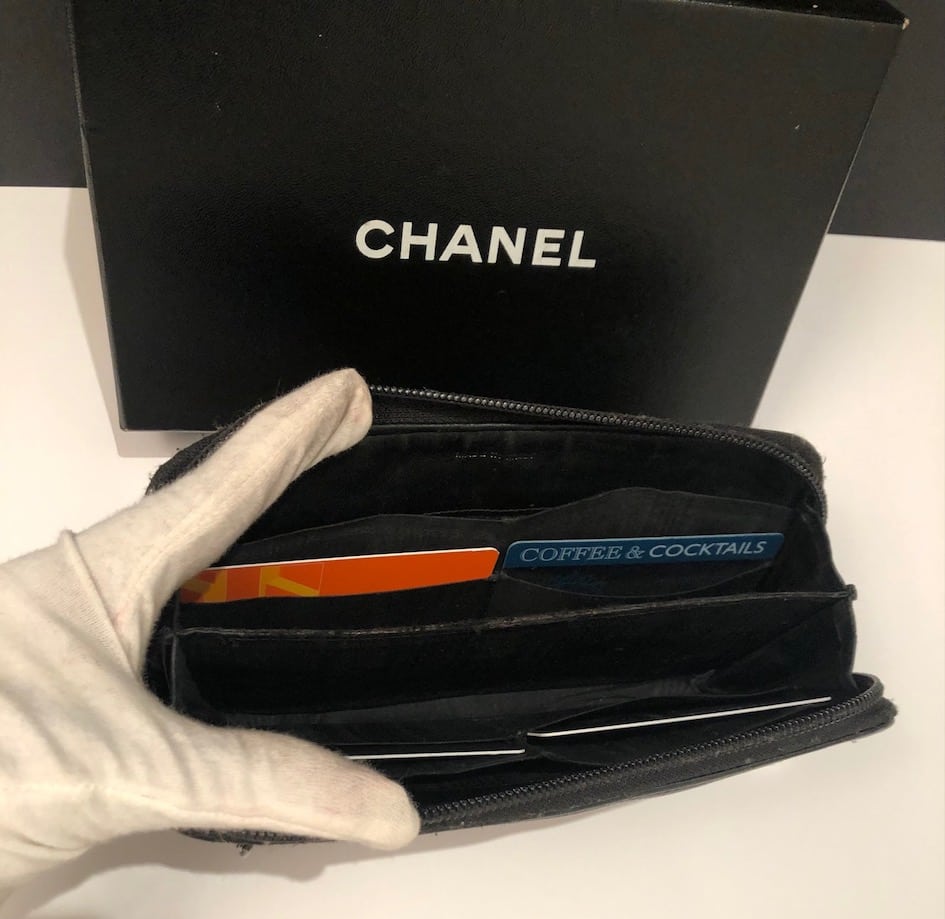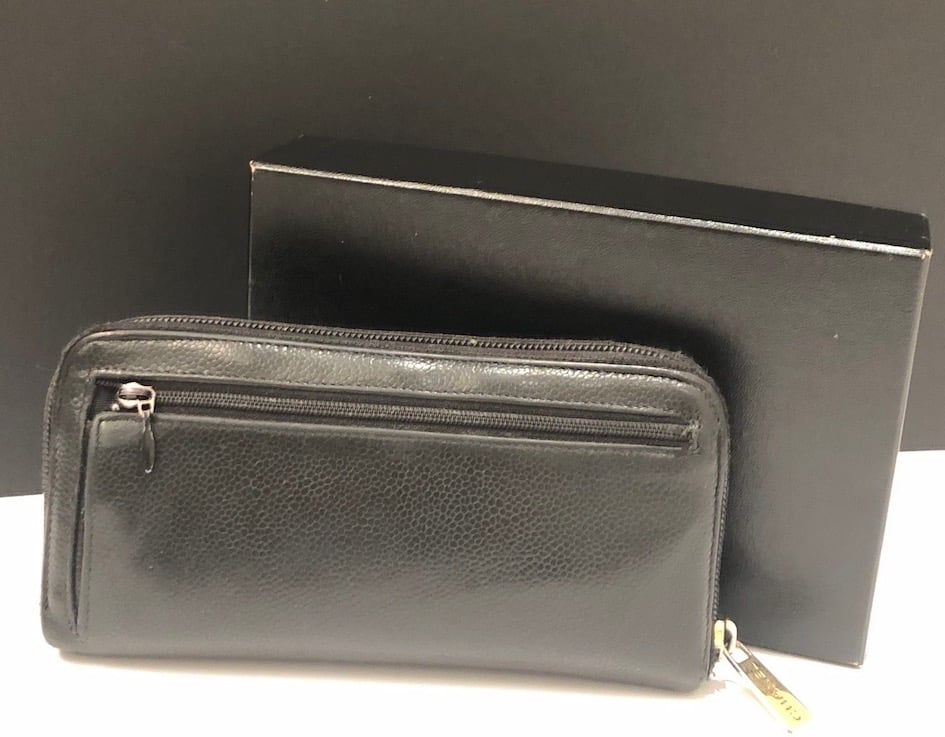 CHANEL CC Stitched Logo Long Black Wallet Zipper Vintage 2004