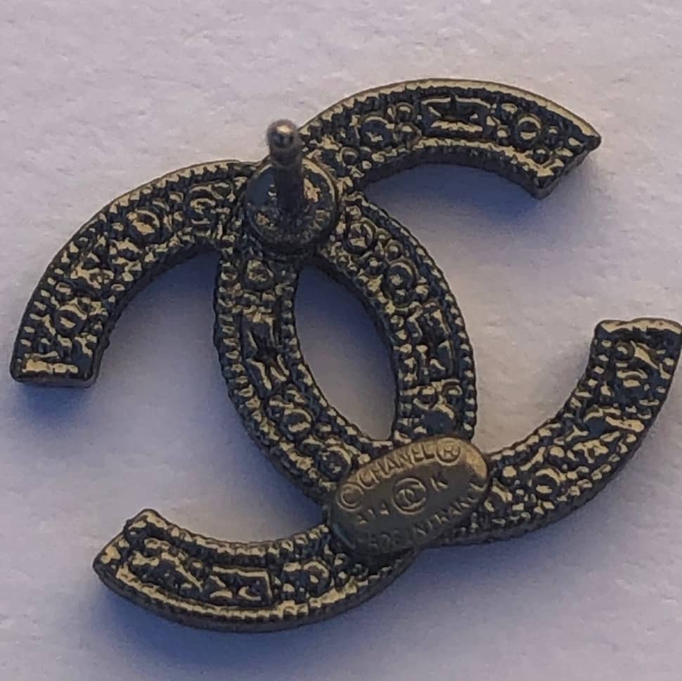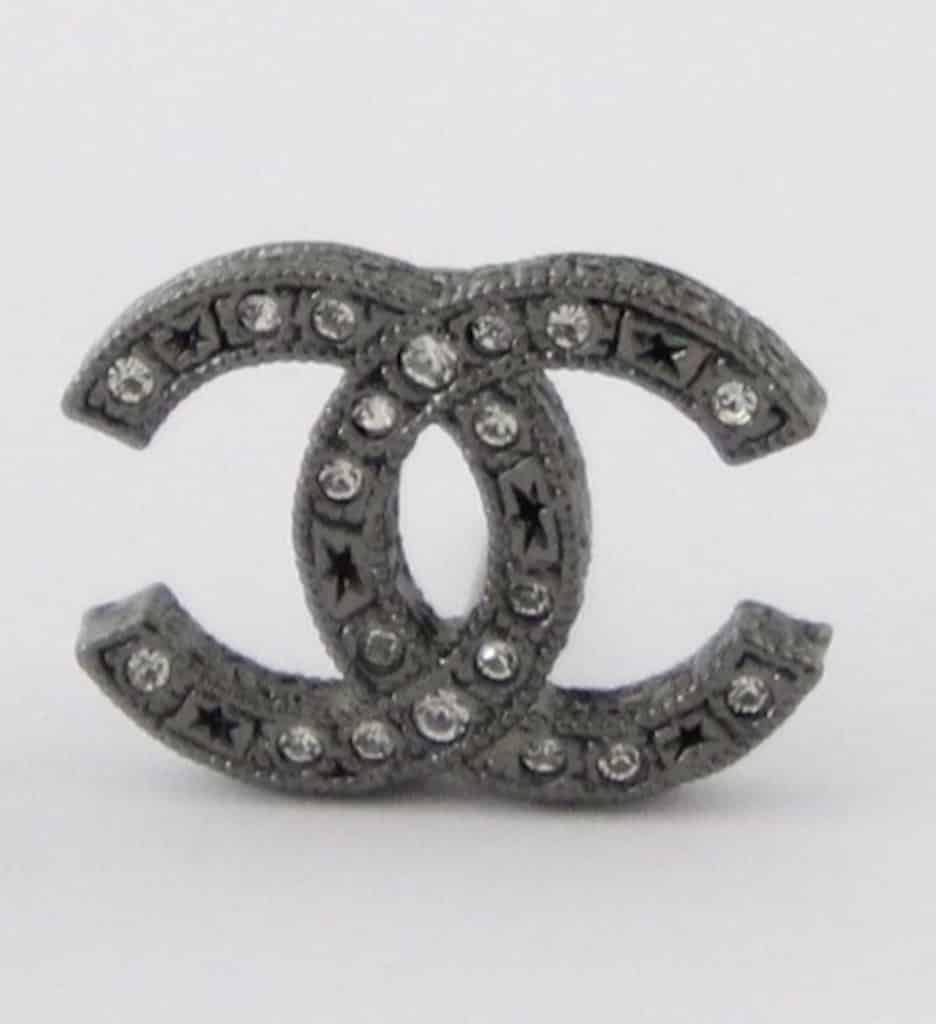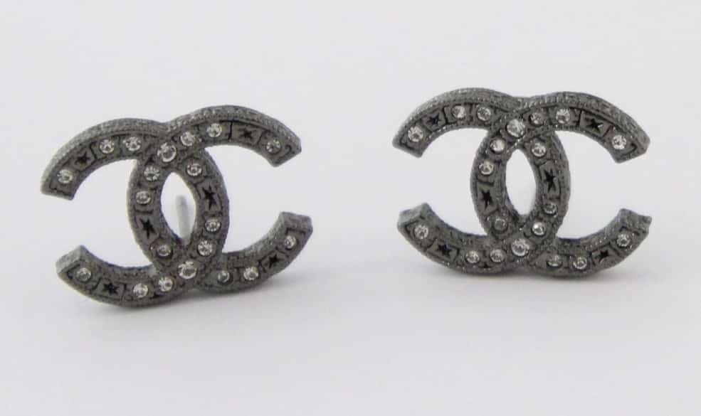 A rare small pair of CHANEL CC logo metal stud earrings from the collection Métiers d’Art, Pre-Fall 2014 ‘Paris-Dallas’. Handcrafted in black-grey silver metal set with Swarovski crystal. They are for pierce ears, very glamorous, sophisticated and a perfect everyday accessory.