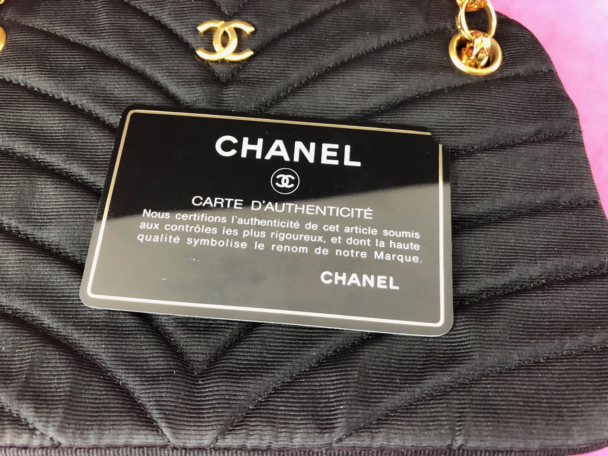 Condition B+: Vintage-preowned – good condition. Very gentle sign of wear on the chevron cloth, no stains, no holes. The gold tone hardware, CC logo and the double gold chain strap are in amazing condition. The interior is very clean. Chanel Paris acronym, made in France, black linen fabric, serial number inside the bag. Delivered with the authenticity card ref : 191XXXX and the dust bag.
