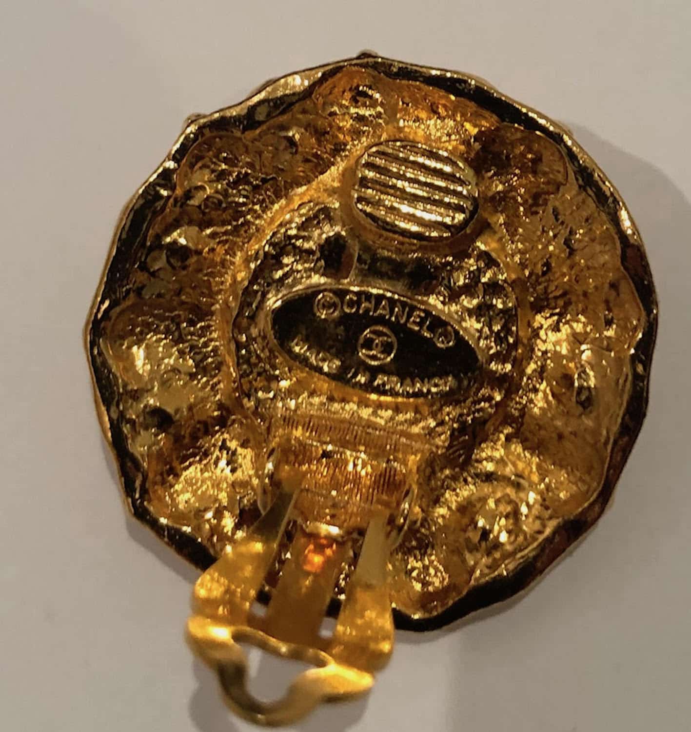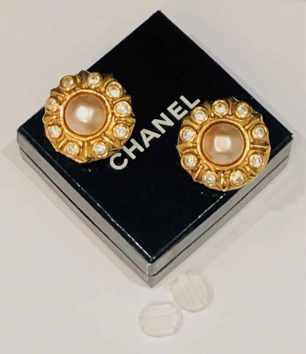 CHANEL Earrings 1970s Vintage Faceted Pearl & Crystals Flower Clip-On W/Box