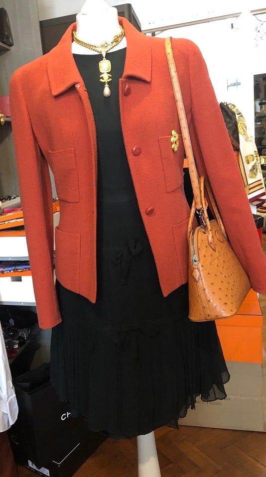 Chelsea Vintage Couture specialises in French Fashion designer clothing, handbags, jewellery and accessories. All our items are 100% authentic and carefully verified by our in-house expert before offering them for sale to our clients. We are experts in the brands we sell and we know the provenance. Your trusted source for rare, one-off French vintage – preowned HERMÈS , CHANEL, LOUIS VUITTON, YSL, DIOR, LOUIS FERAUD… They are vintage or preowned and comply with the item description. Vintage preowned items are not new and therefore may have minor imperfections even though they have been used and worn with love and care. Any age-related wear will be mentioned.