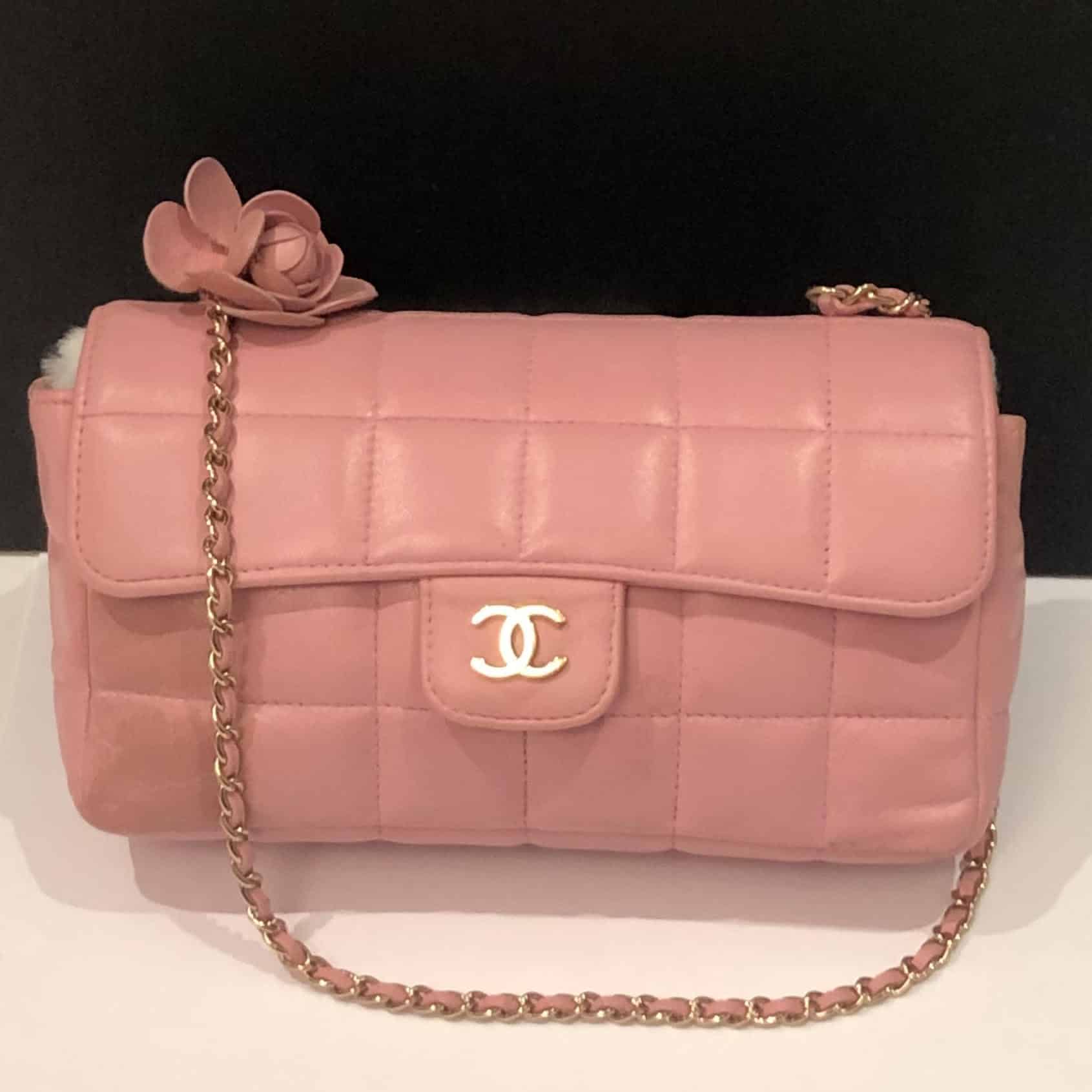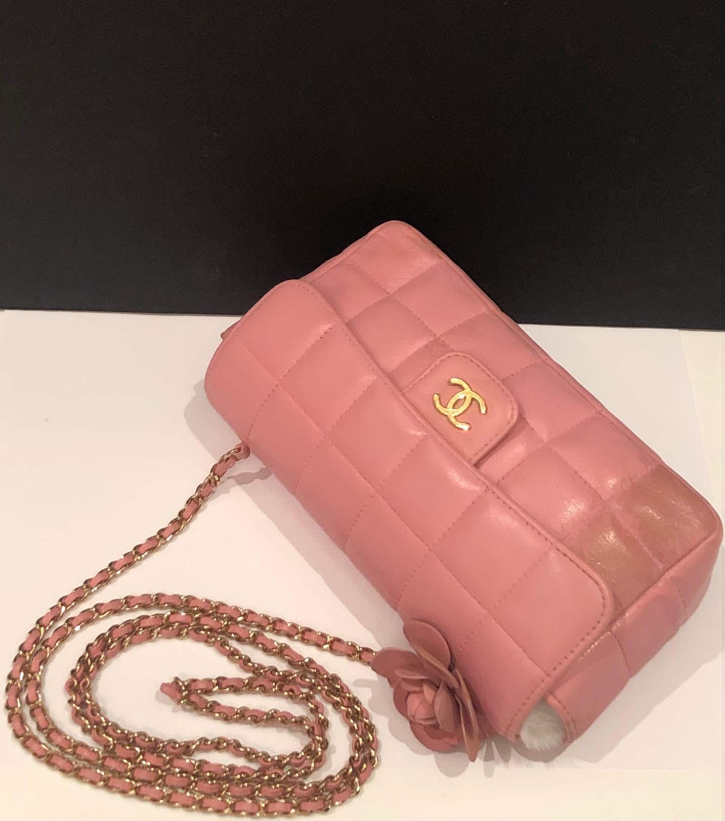 CHANEL Pink Lambskin Quilted Mini Chocolate Bar Camellia Flap 2003-2004 W/Box