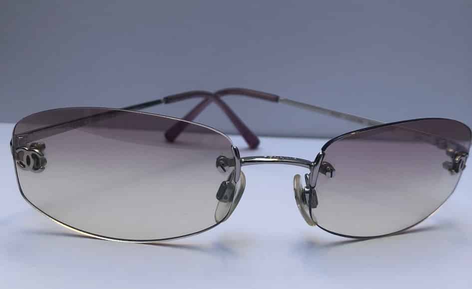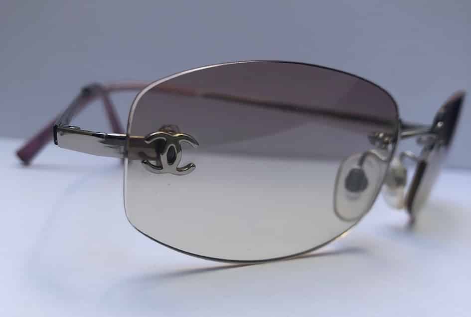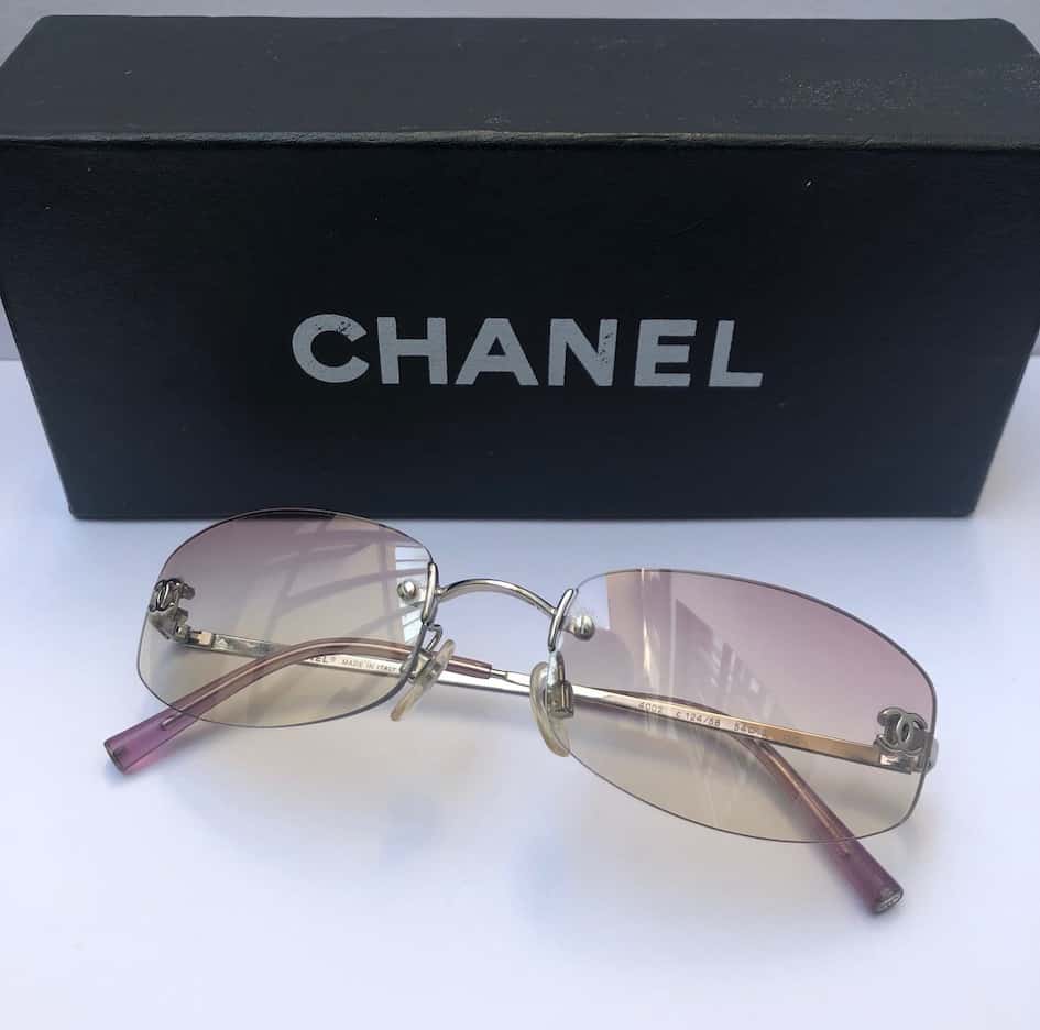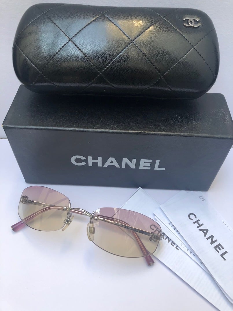 • CHANEL CC Aviators Pink Rimless Sunglasses W/Case