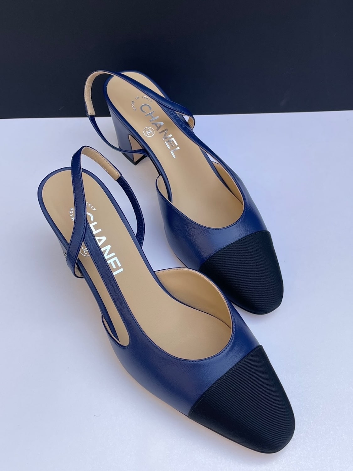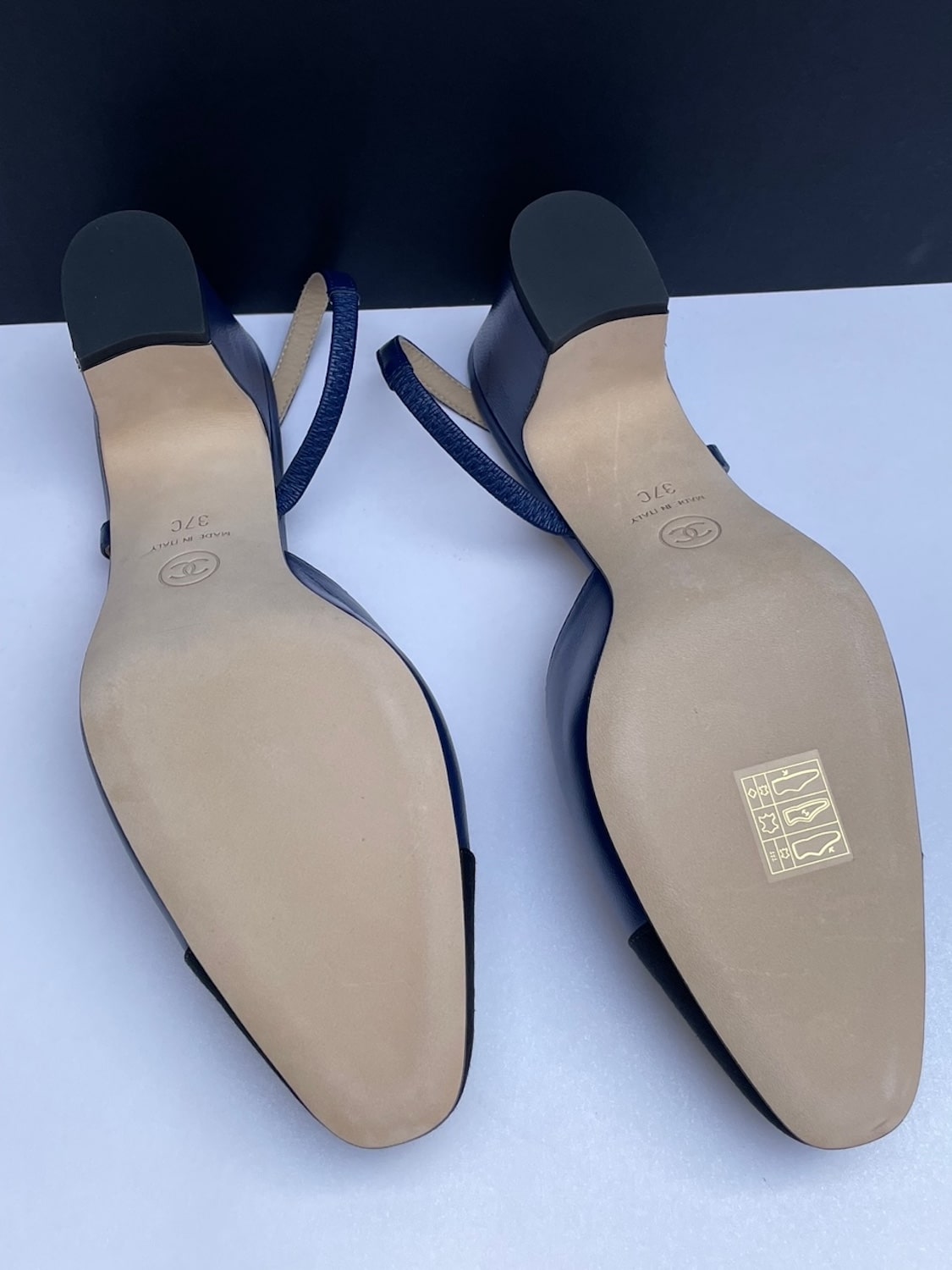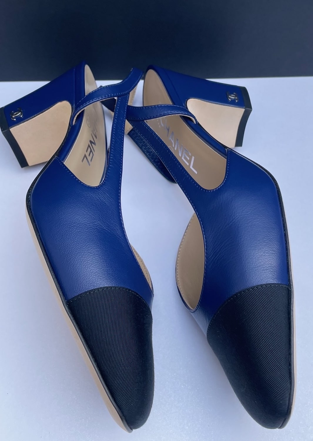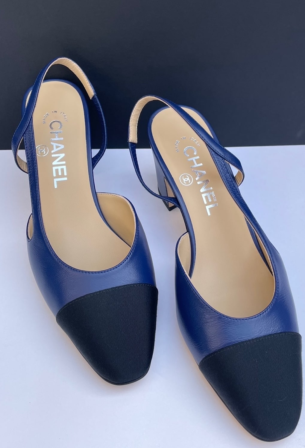CHANEL Slingback Lambskin & Grosgrain Navy Blue & Black