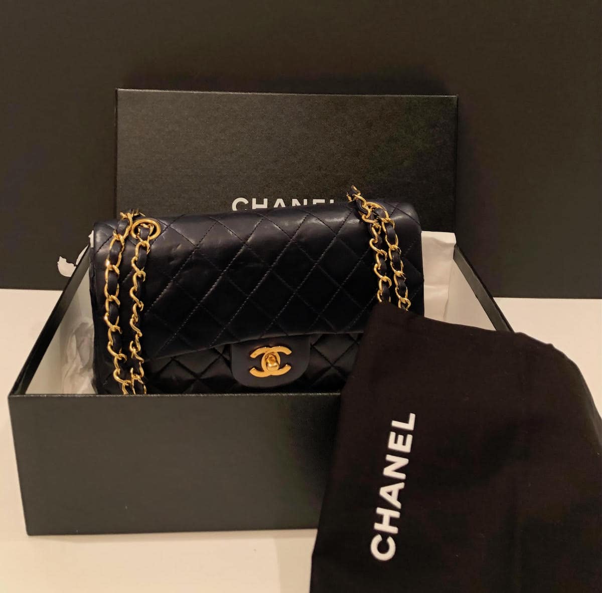 Packaging: A Chanel Black Box, a Chanel dust-bag