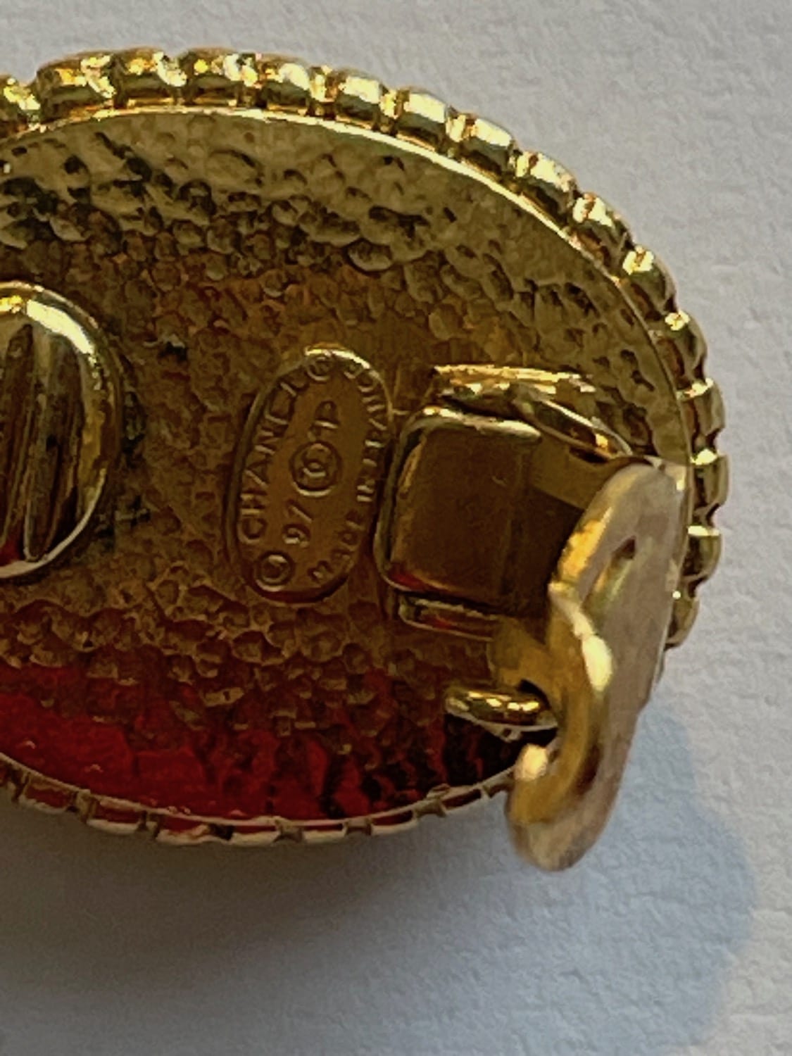 CHANEL Vintage Baroque CC Logo Gold Pearl Oval Earrings W/Box C.1997