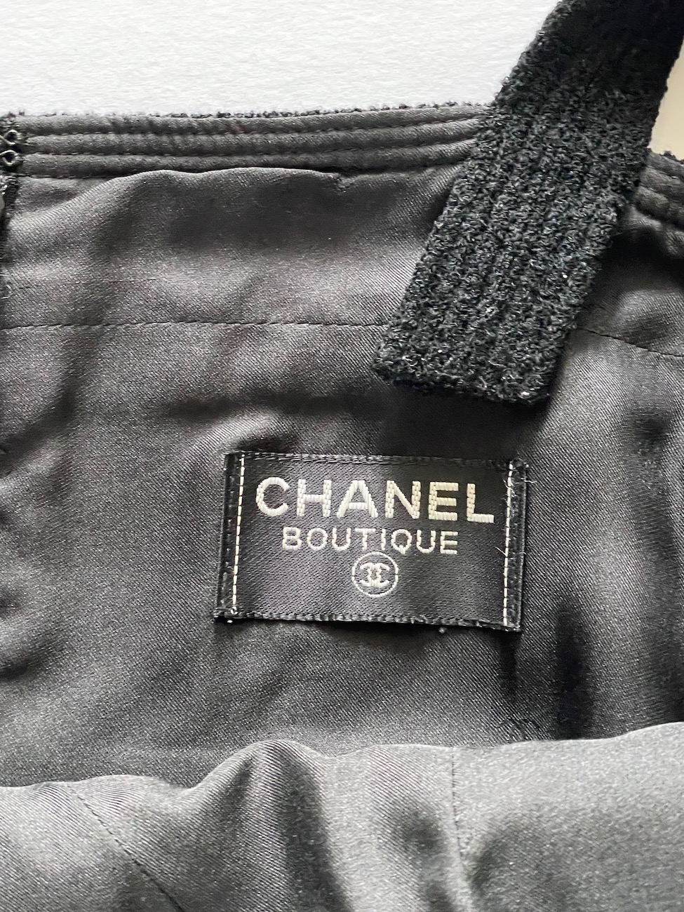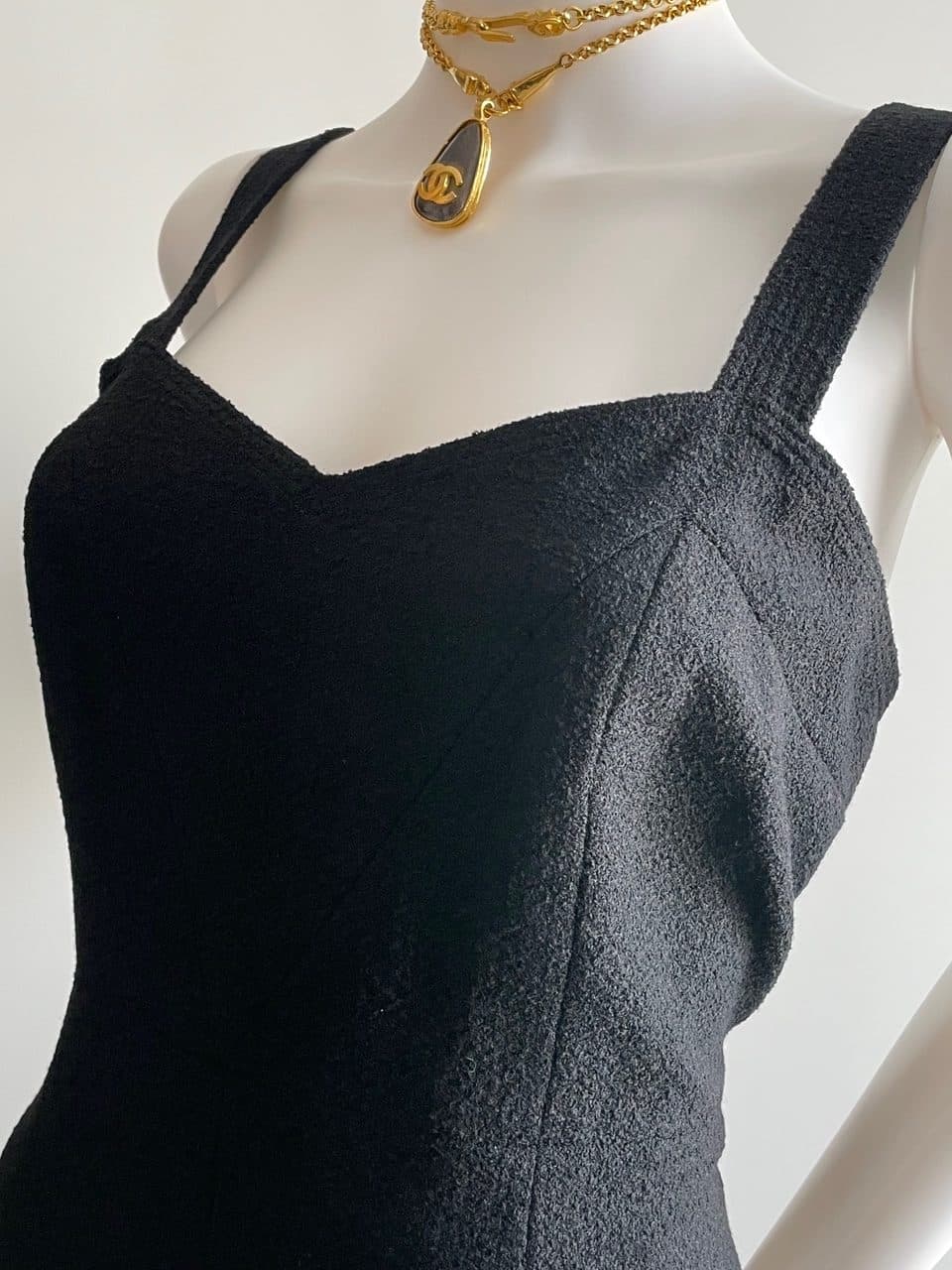 CHANEL Vintage Black Tweed Cocktail Dress C.1990s