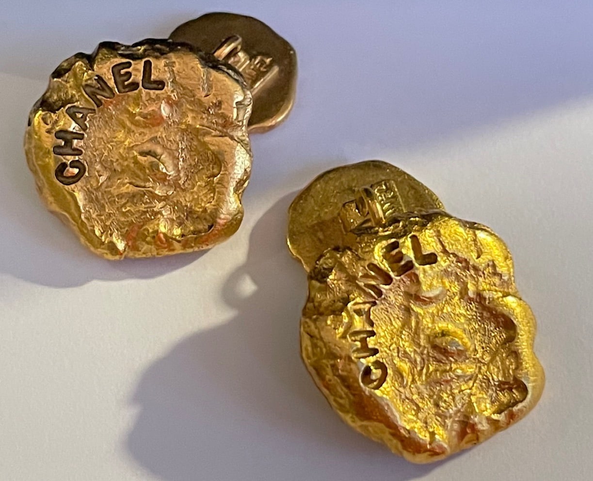 CHANEL Vintage CHANEL Logo Cufflinks Gold Tone 1980s