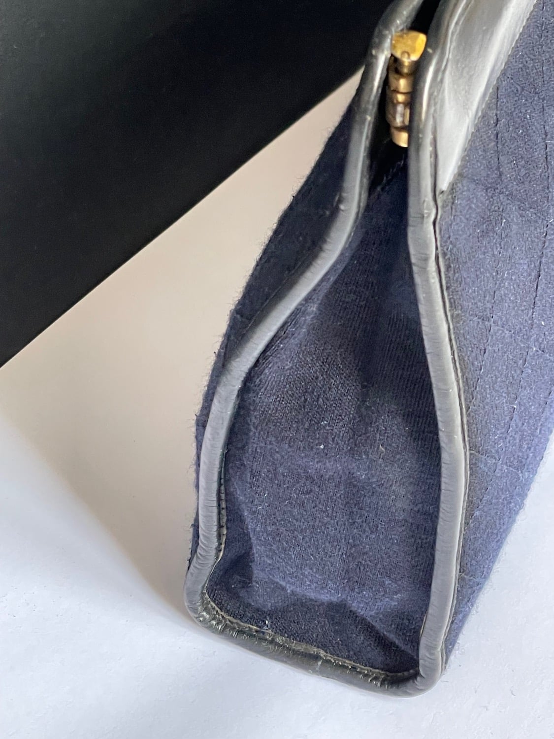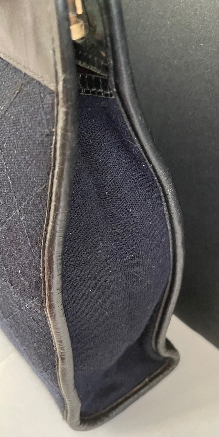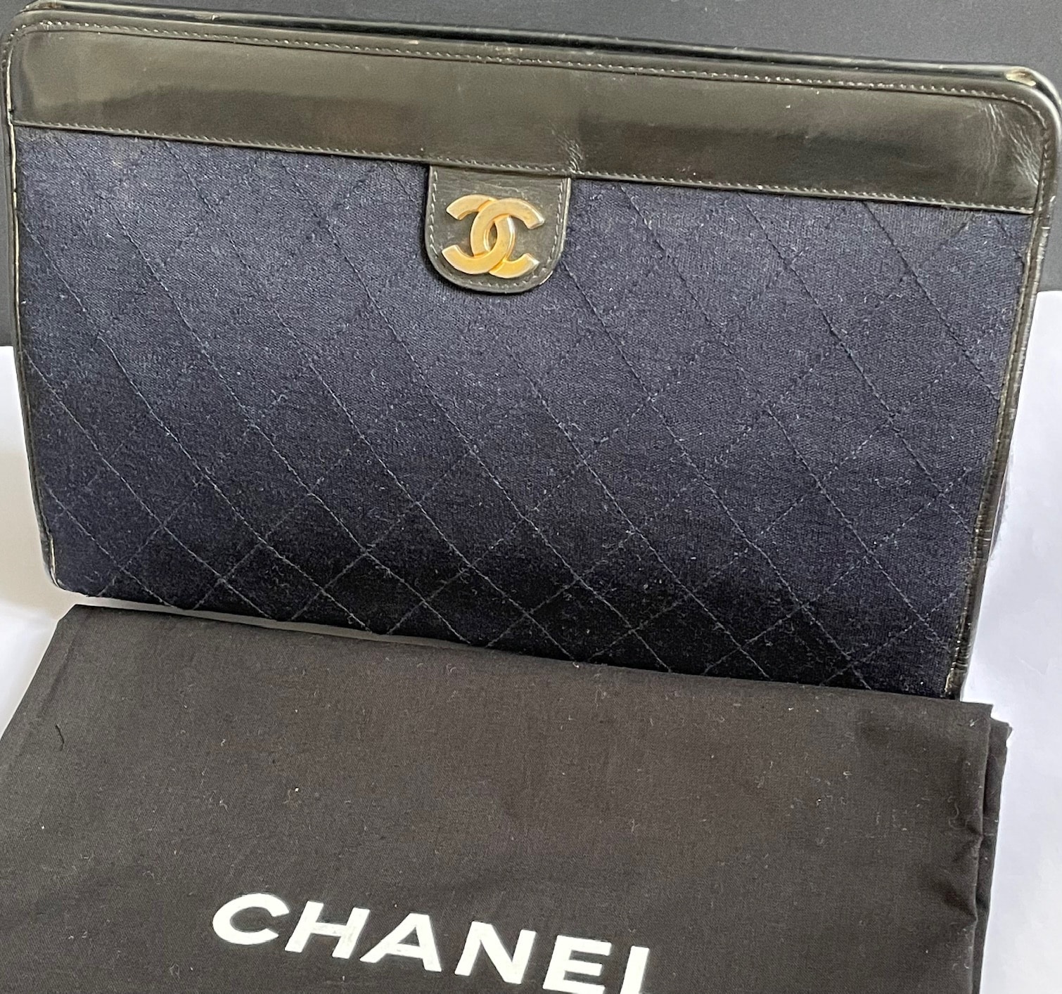 CHANEL Vintage Diamond Quilted Clutch CC Logo Leather & Jersey Handbag C.1970s-1980