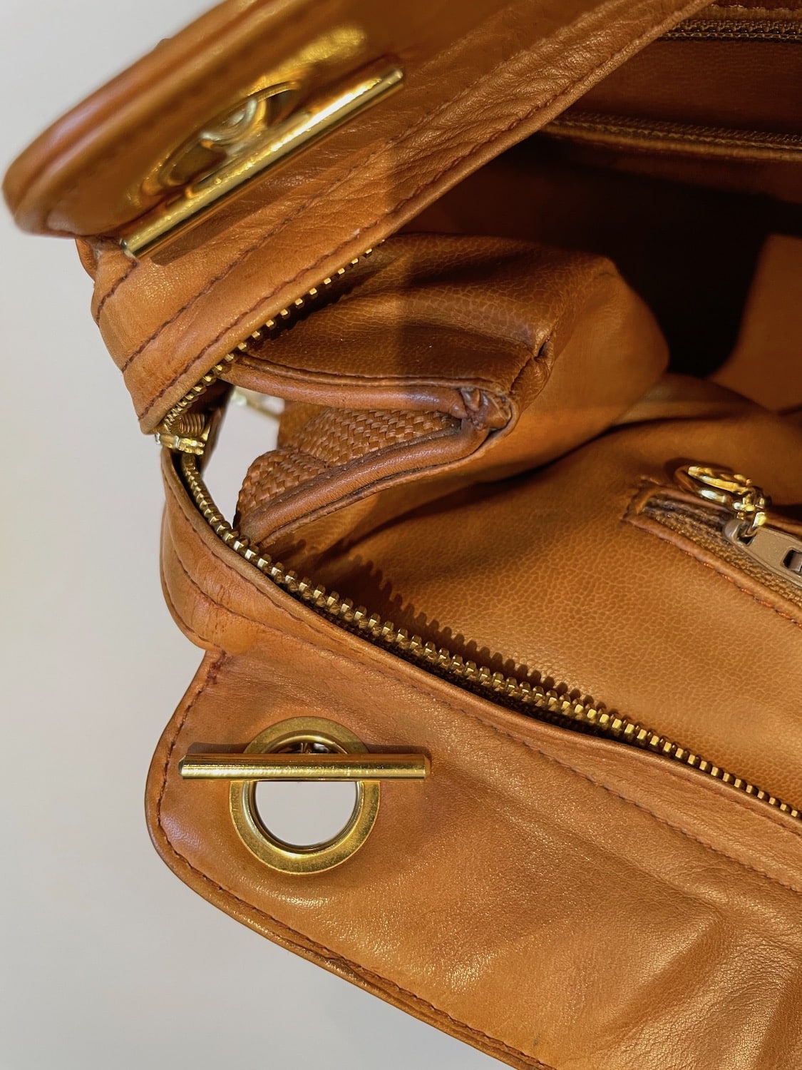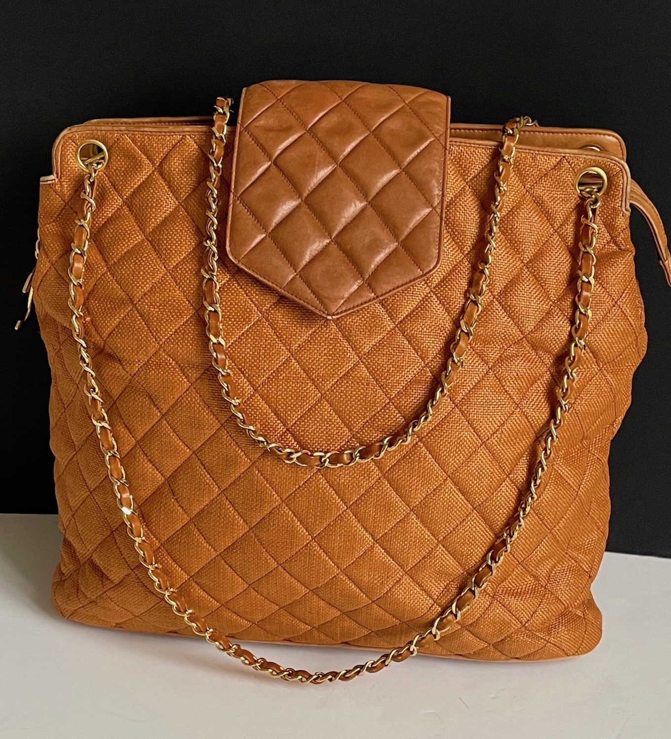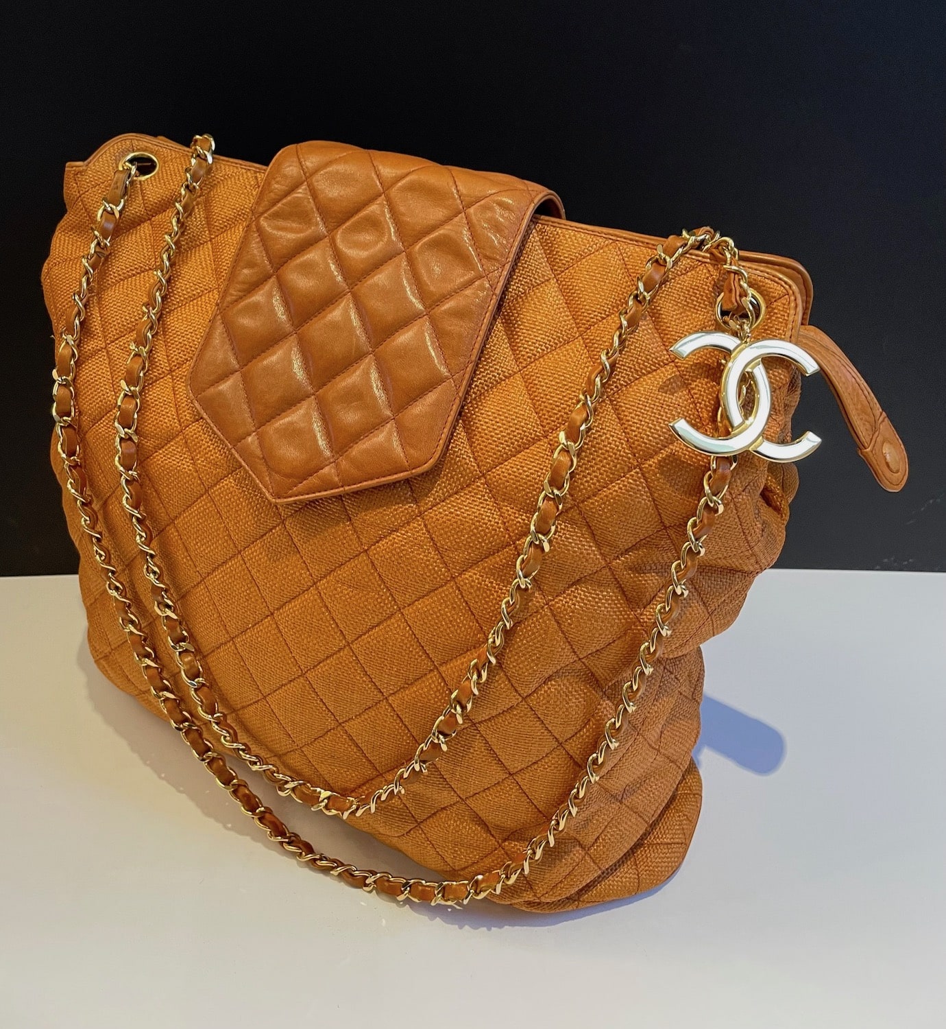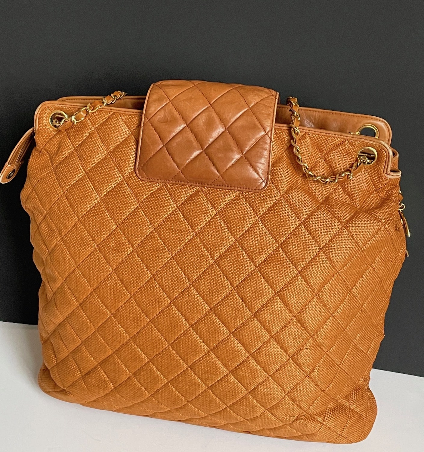 CHANEL Vintage Grand Shopping Tote Bag Cognac Quilted CC Logo C.1990s.