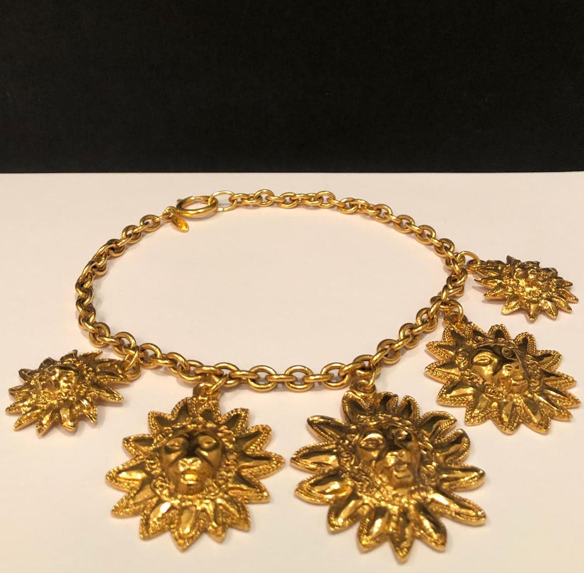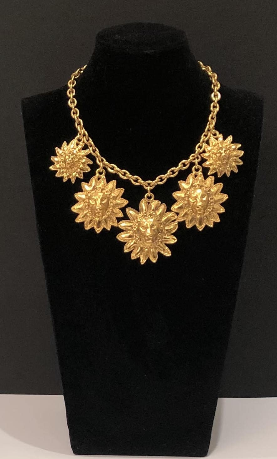 CHANEL Vintage Lion Head Medallion Necklace Circa 1980s W/Box