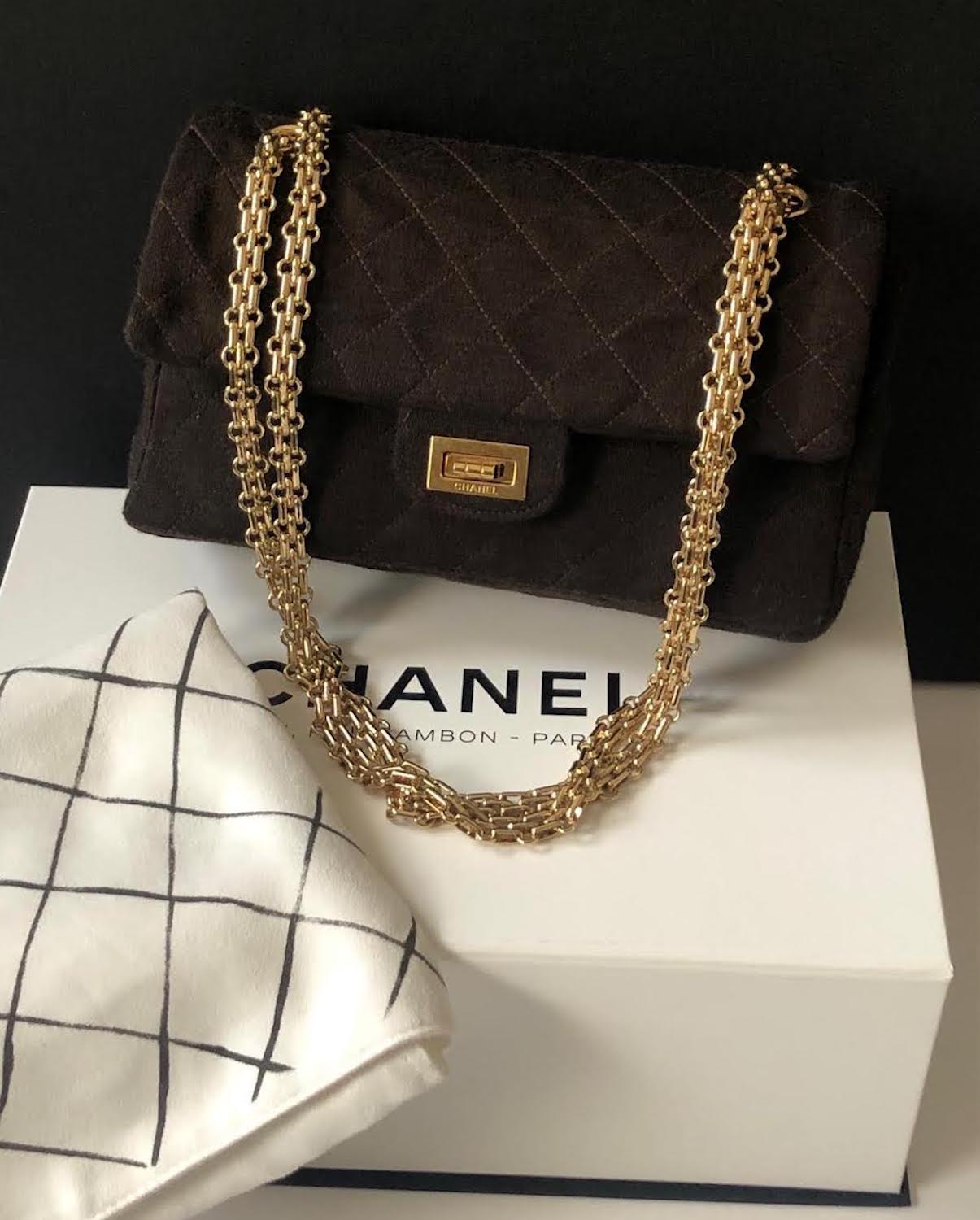 CHANEL Vintage Quilted Silk Velvet Grosgrain 2.55 Double Flap Bag C.1955-71 W/Box