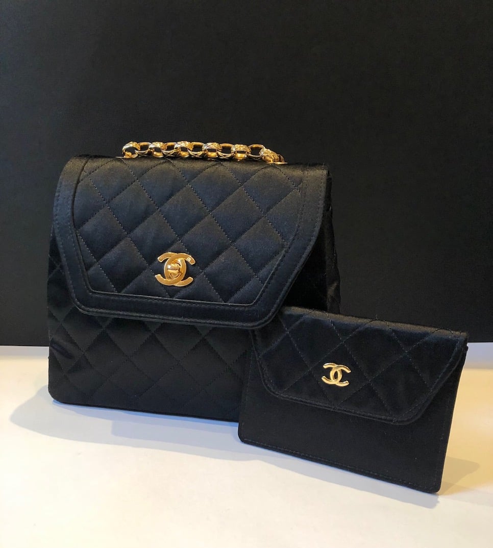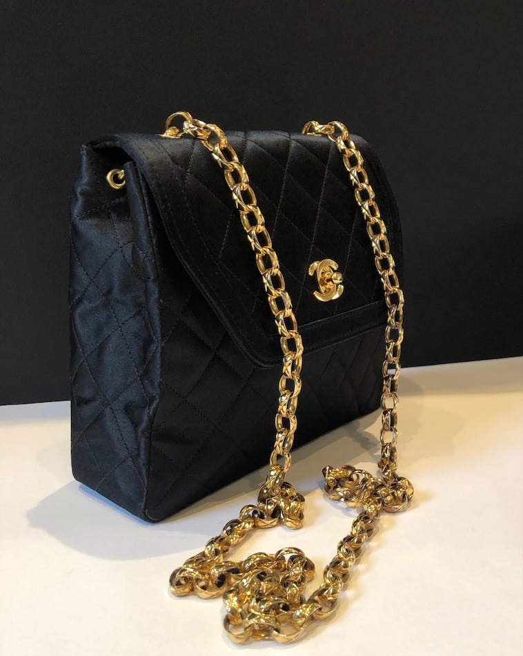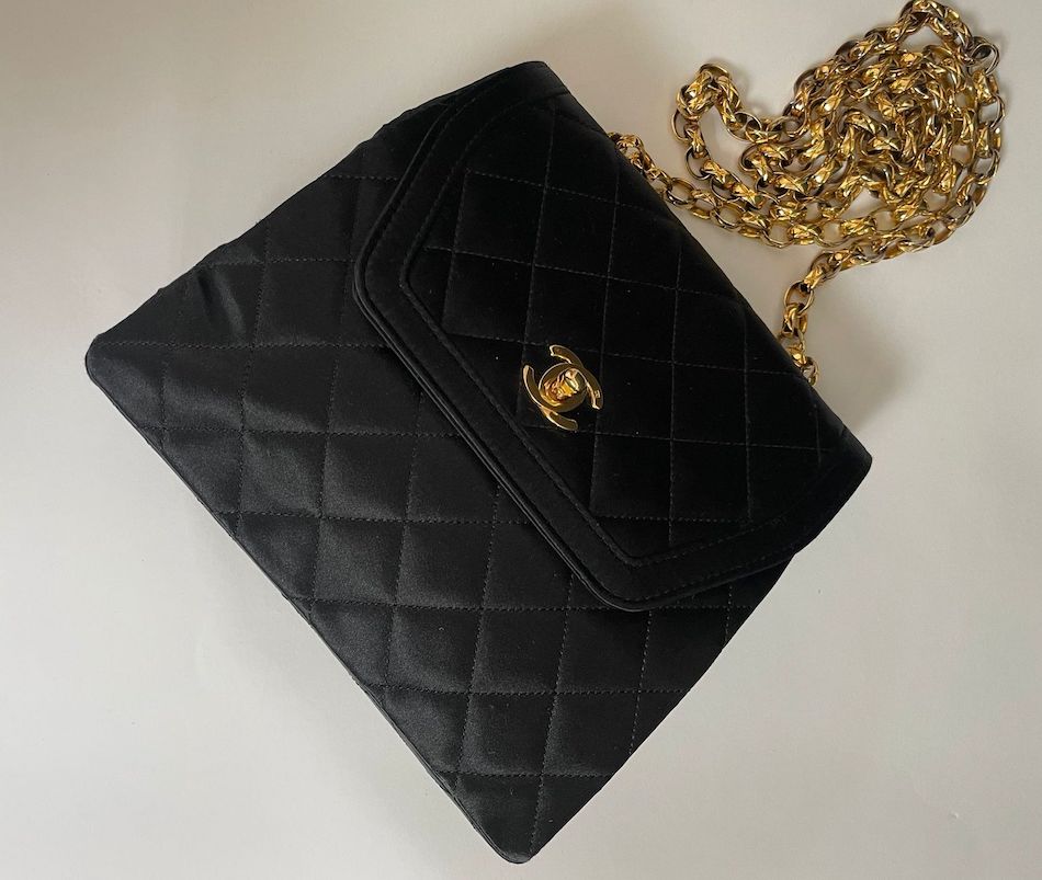 CHANEL Vintage Satin Quilted Black Flap Bag 1990s REF: CVC18040518-CUK72