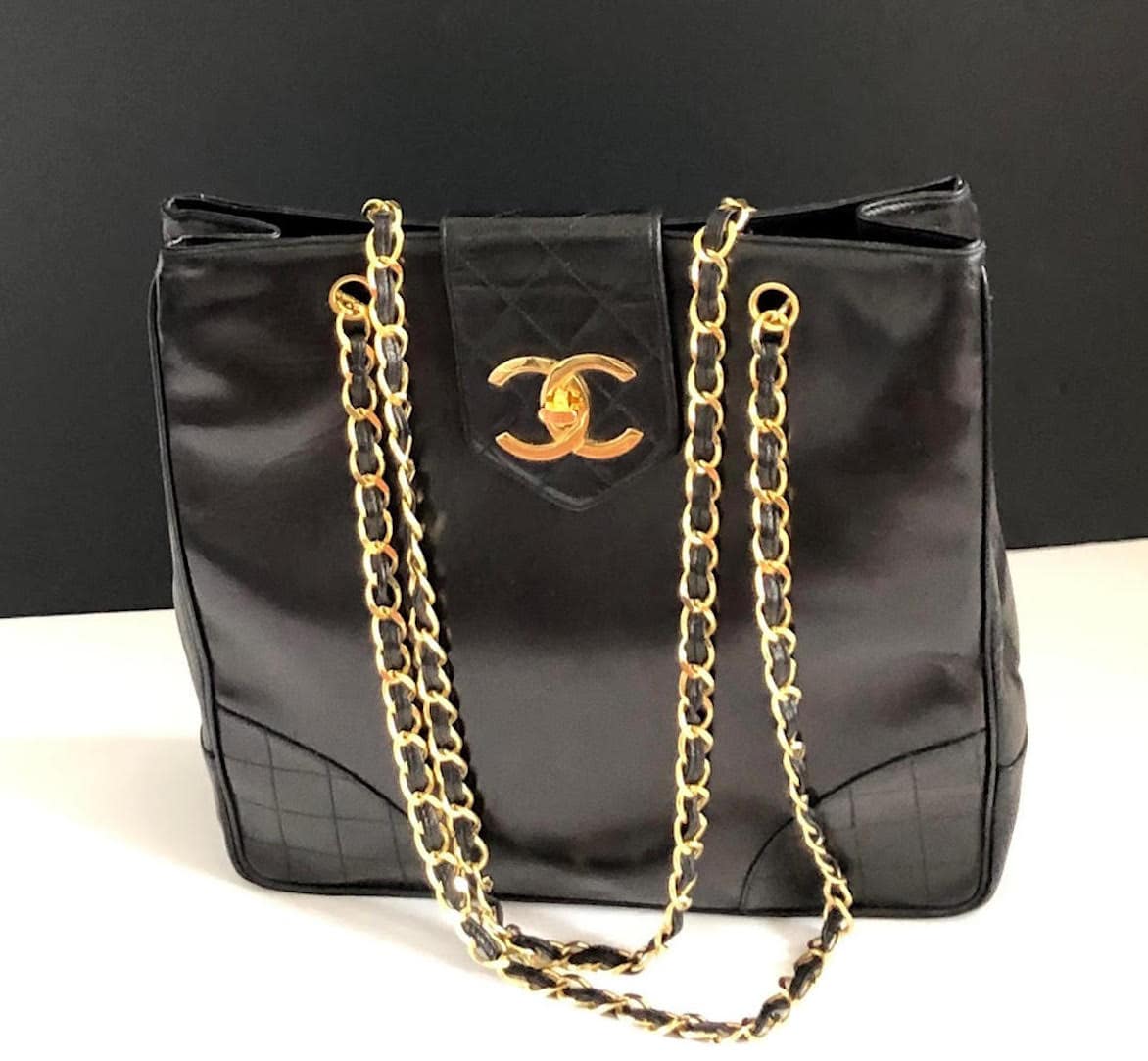 CHANEL CC Logo Grand Shopping Tote Black Shoulder Bag Vintage
