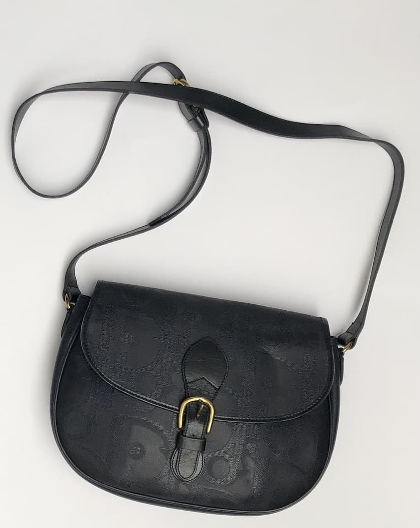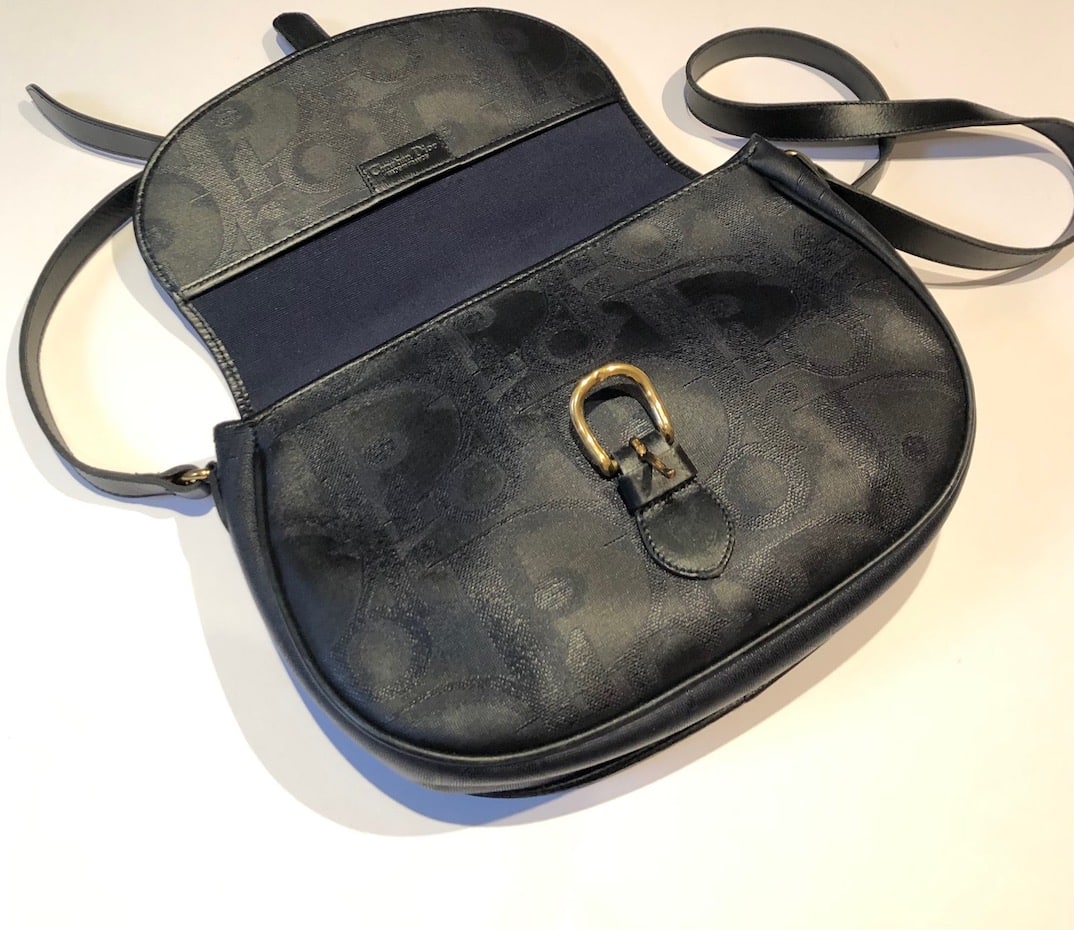 CHRISTIAN DIOR 1990s Bobby Dior Monogram Shoulder Bag Navy Vintage