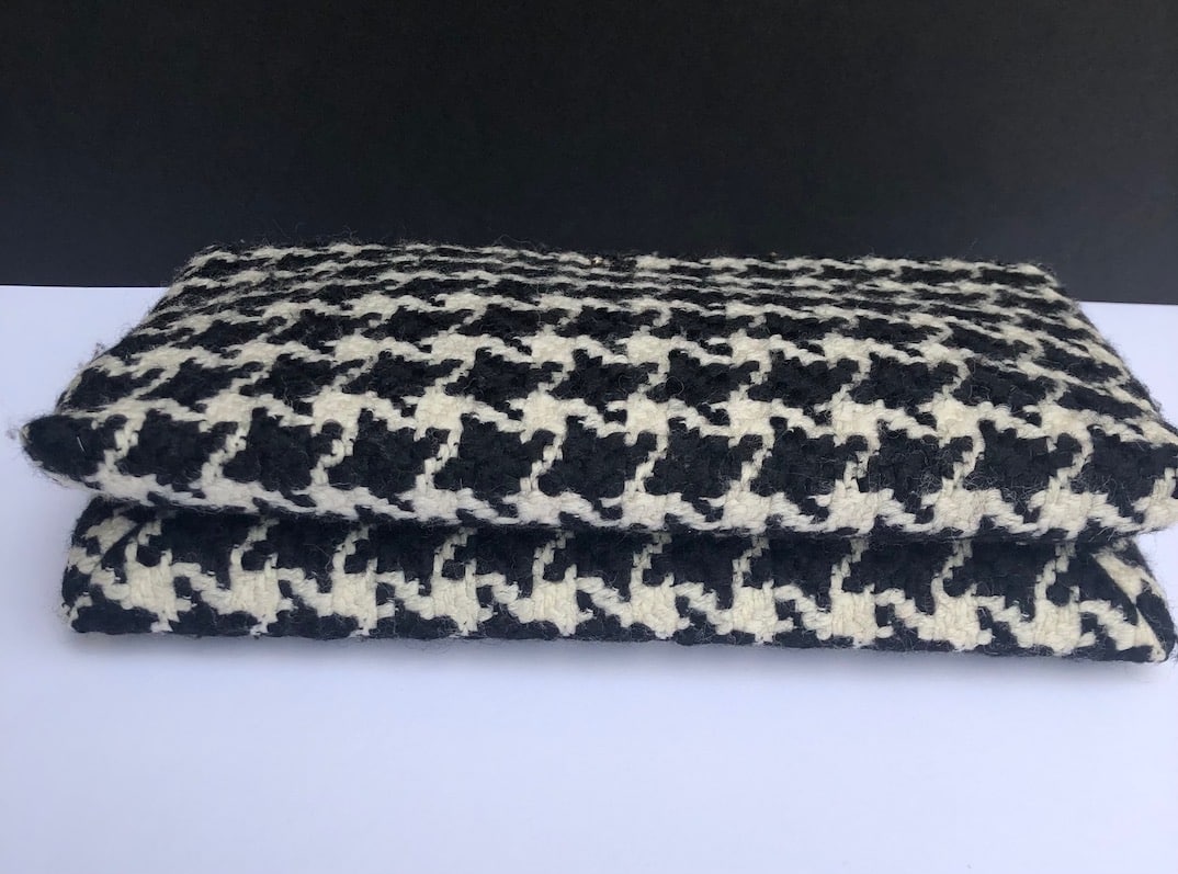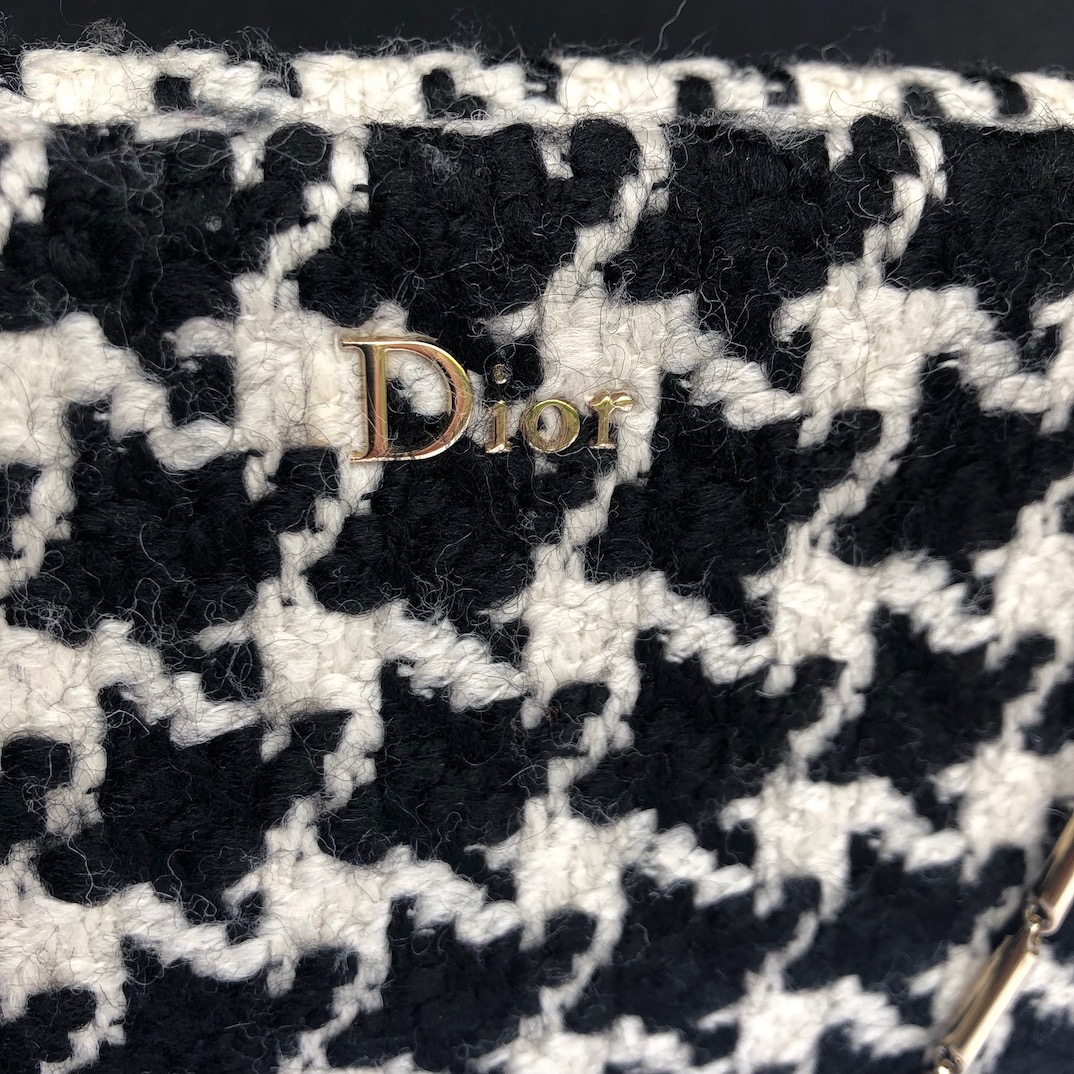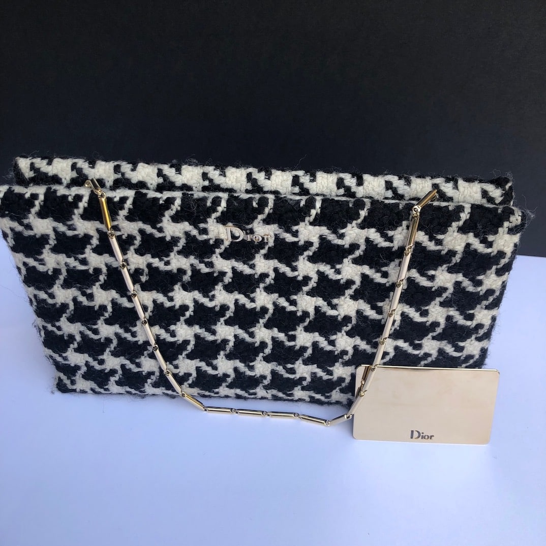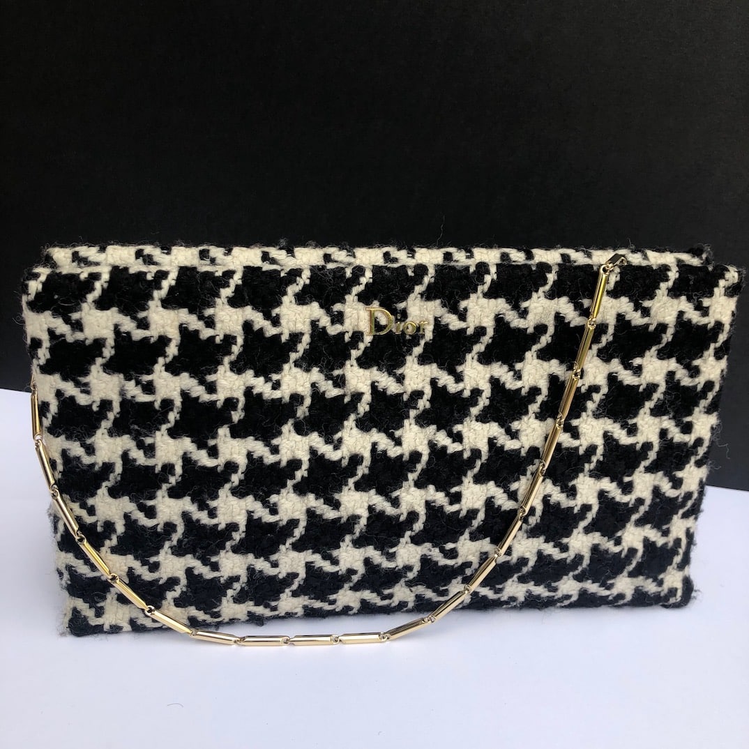 CHRISTIAN DIOR Black & White Houndstooth Tweed Chain Bag Clutch