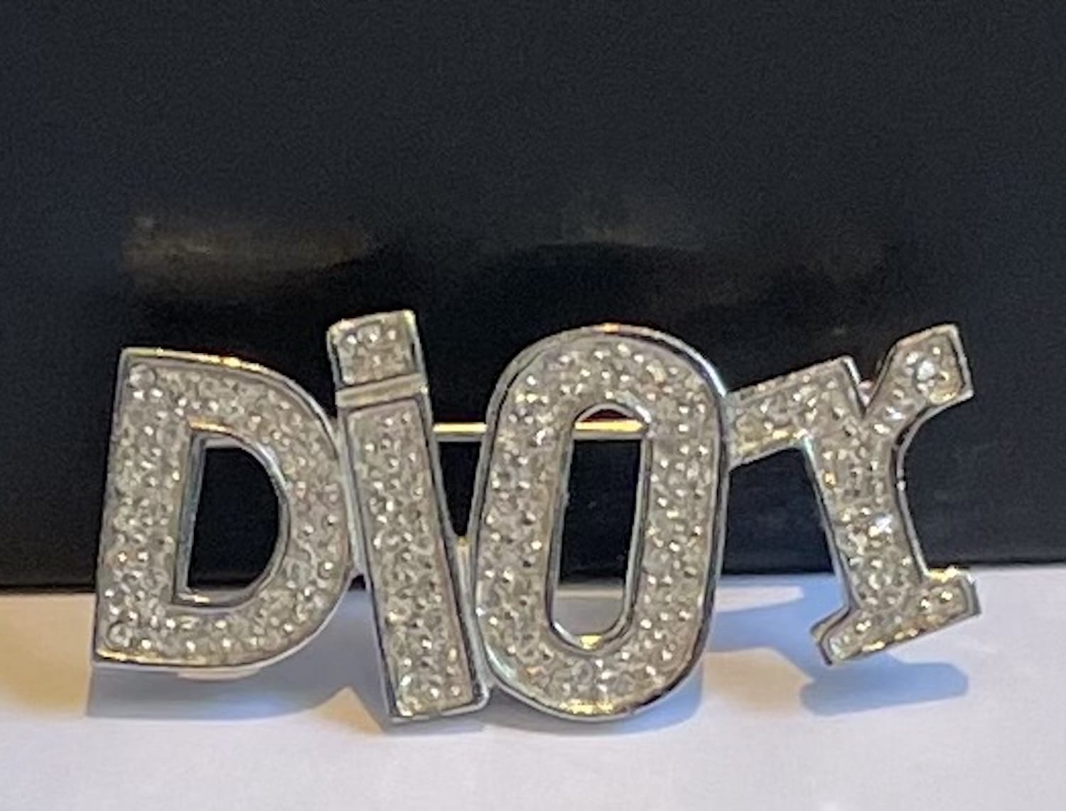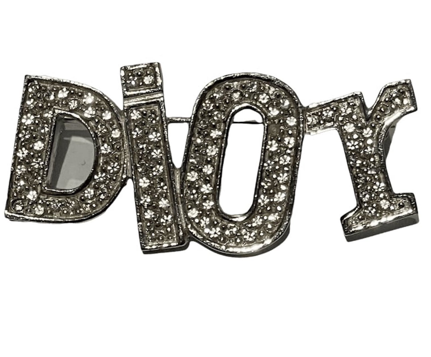 CHRISTIAN DIOR DIO(R)Evolution Brooch Pin White Crystals Silver Metal