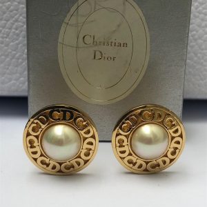 CHRISTIAN DIOR Vintage Earrings 1980s Crystal and Pearl Flower Clip-0n