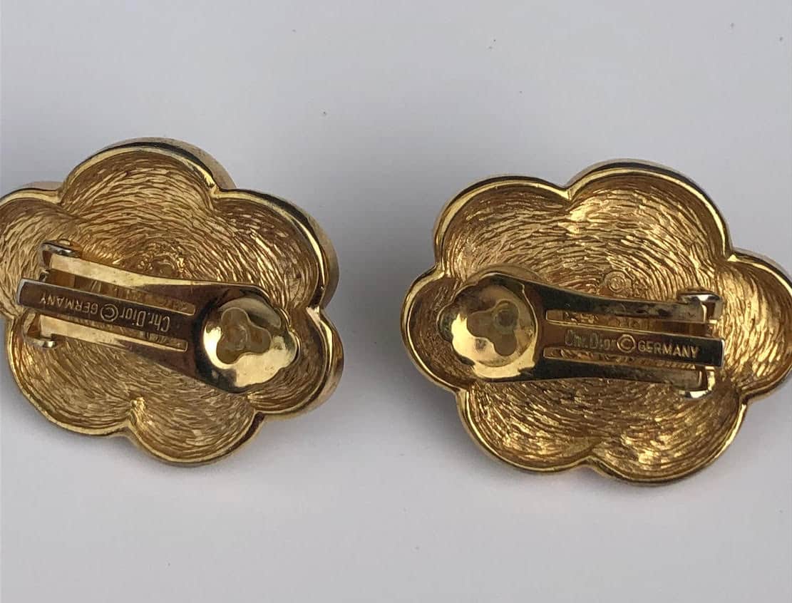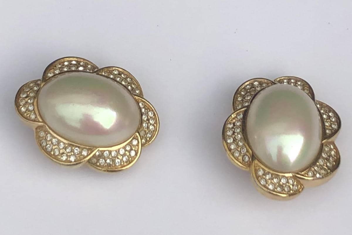 CHRISTIAN DIOR Vintage Earrings 1980s Crystal and Pearl Flower Clip-0n