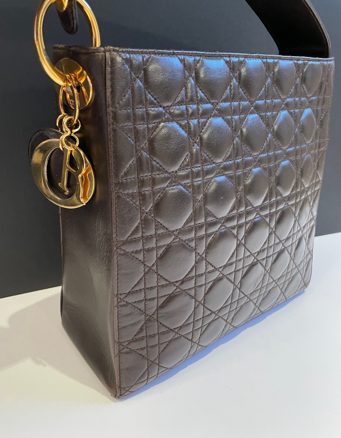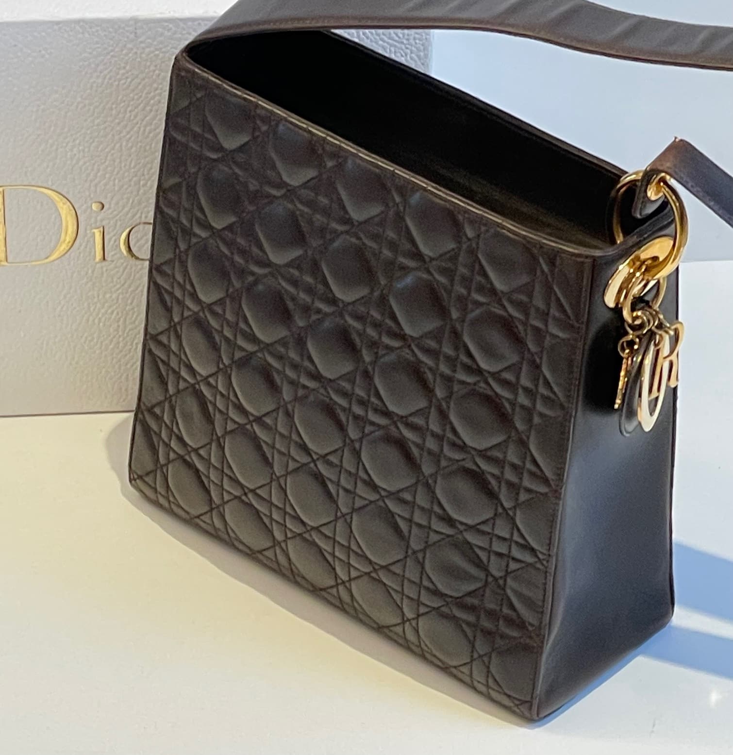 CHRISTIAN DIOR Vintage Cannage Quilted Lambskin Bag Gold Dior Charms