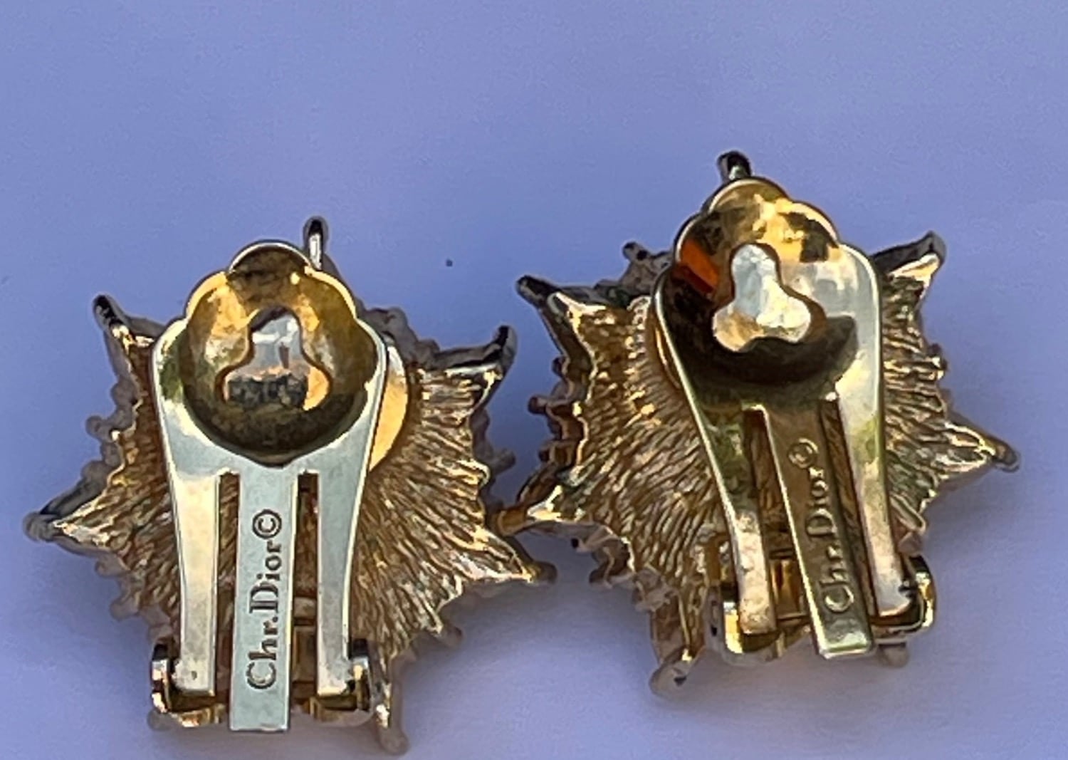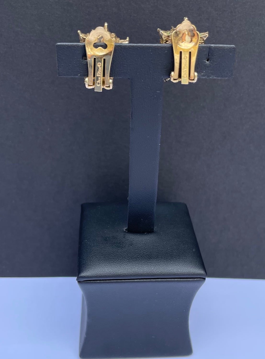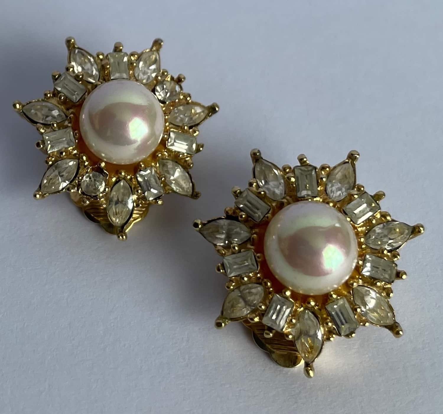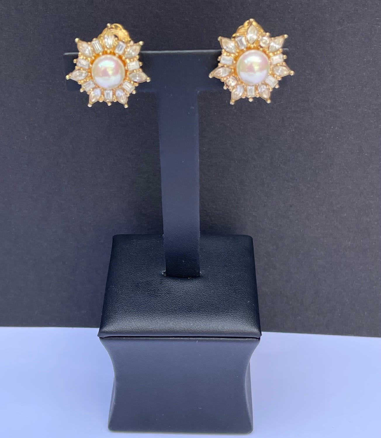 CHRISTIAN DIOR Vintage Clip-On Flower Pearl & Crystal Earrings C.1980