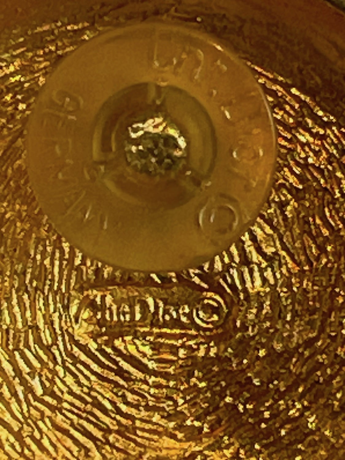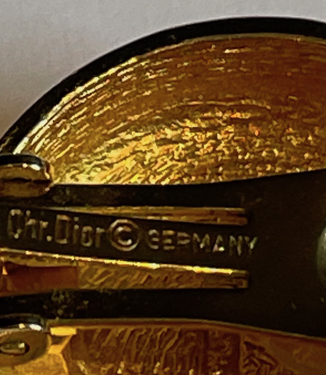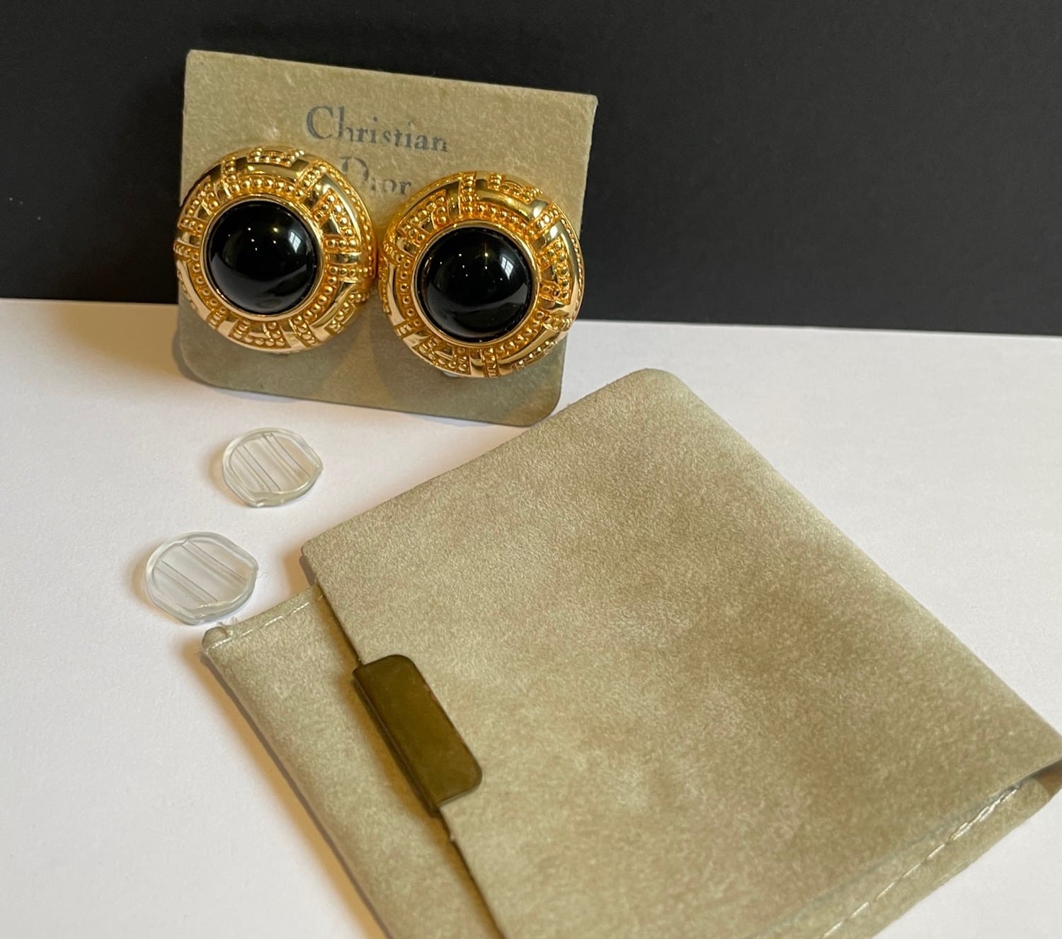 CHRISTIAN DIOR Vintage Couture Button Earrings Gold Tone Black Crystal Cabochon C.1980s