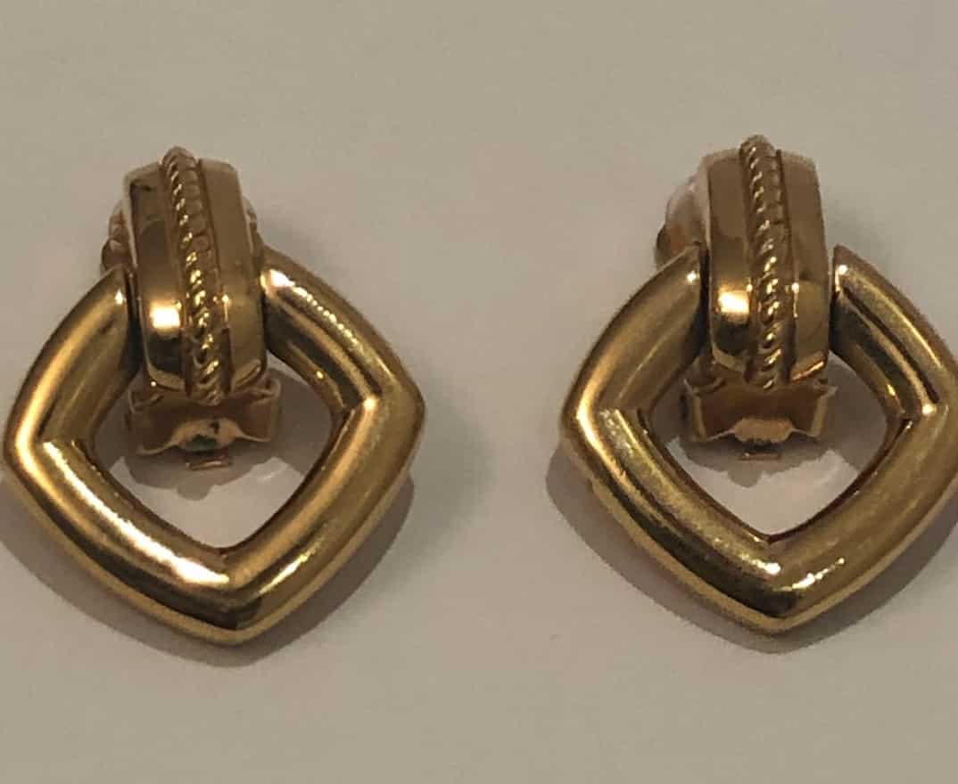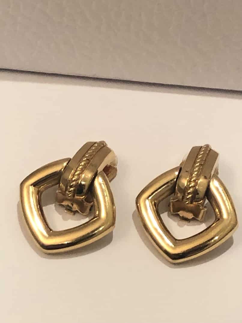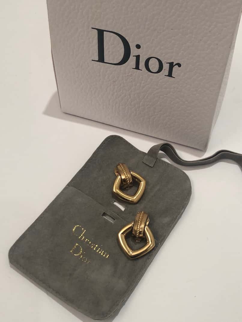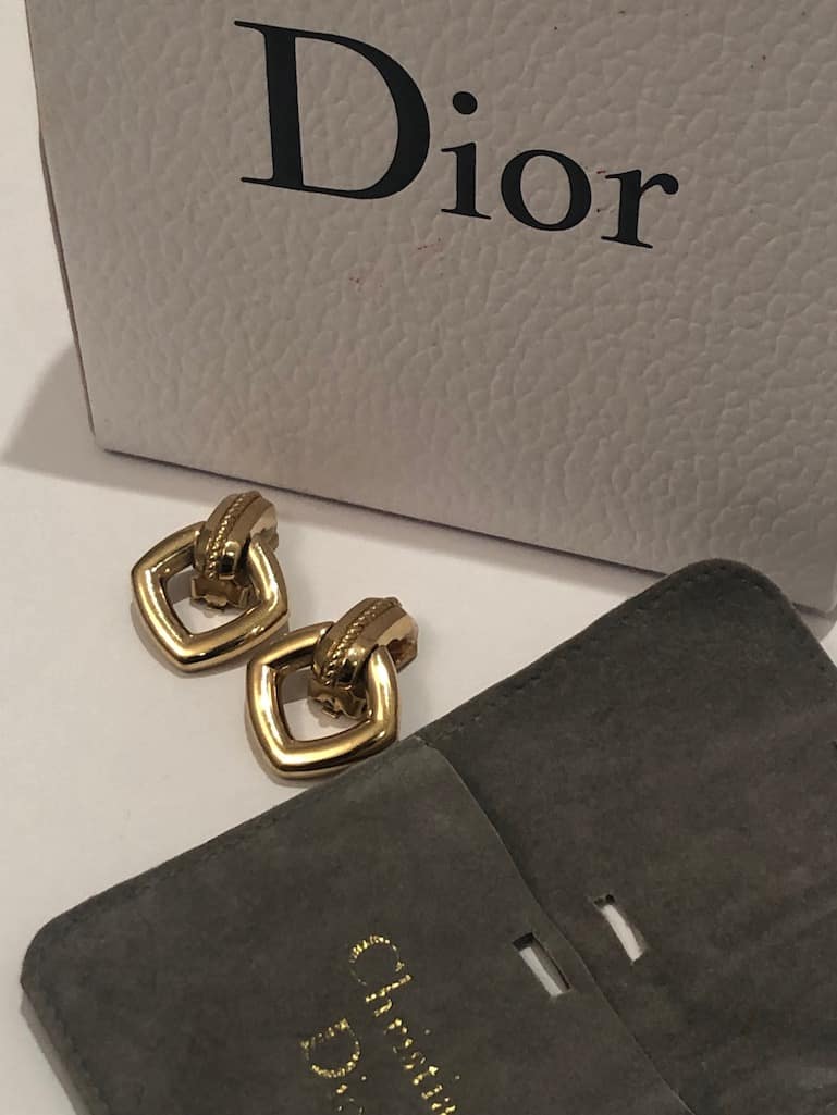 A lovely pair of vintage Christian Dior clip-on earrings, diamond shape in gold tone with tiny crystals in perfect condition. ‘Dior j’Adore’, for everyday use.