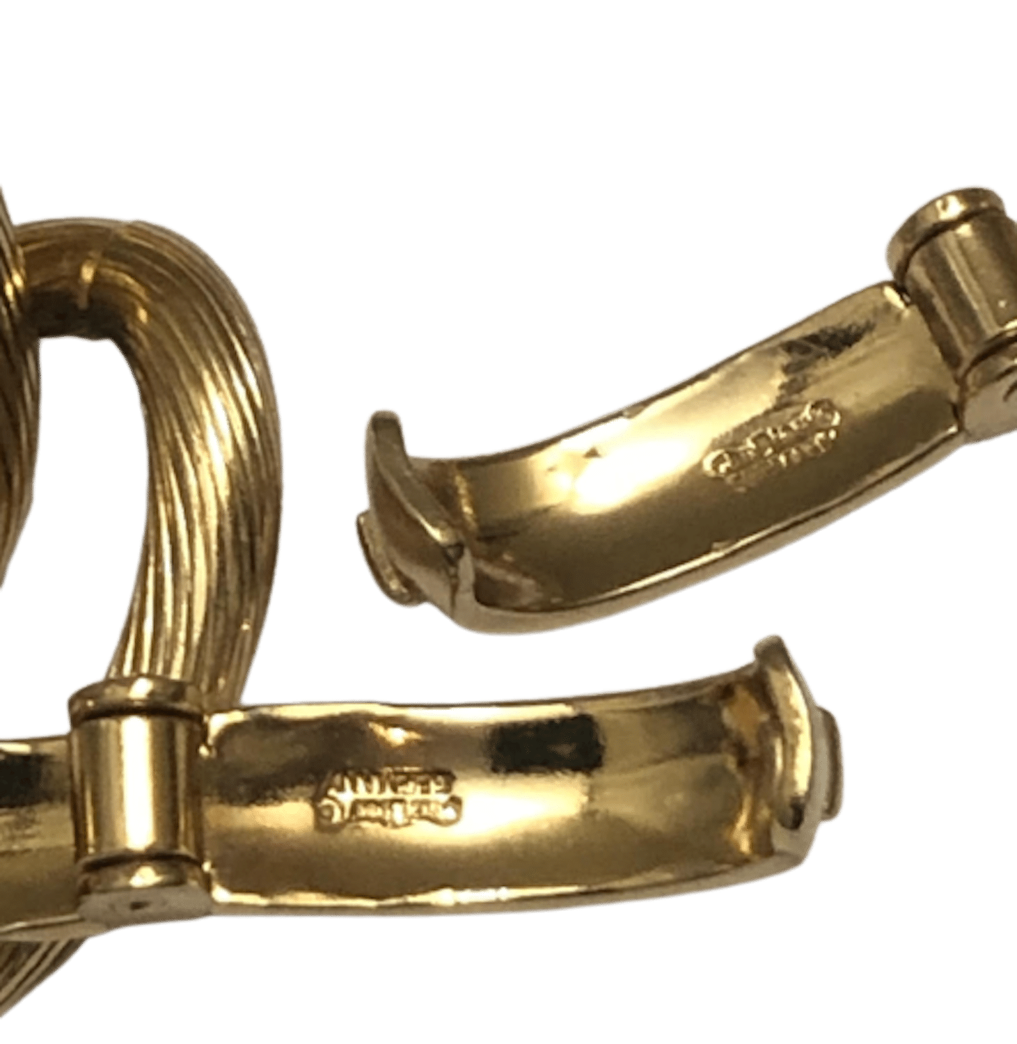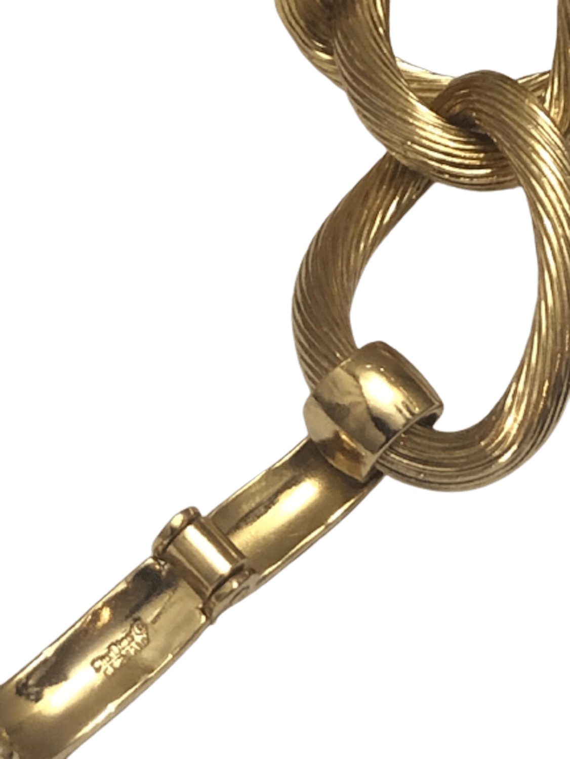 A rare vintage CHRISTIAN DIOR necklace and bracelet set from the 1980s in excellent condition. This wonderful set is handcrafted with gold tone links that have been flattened and twisted, which interlock tightly together between the links with a signed hook closure. Signed on the hook Chr.DiorⒸGermany.