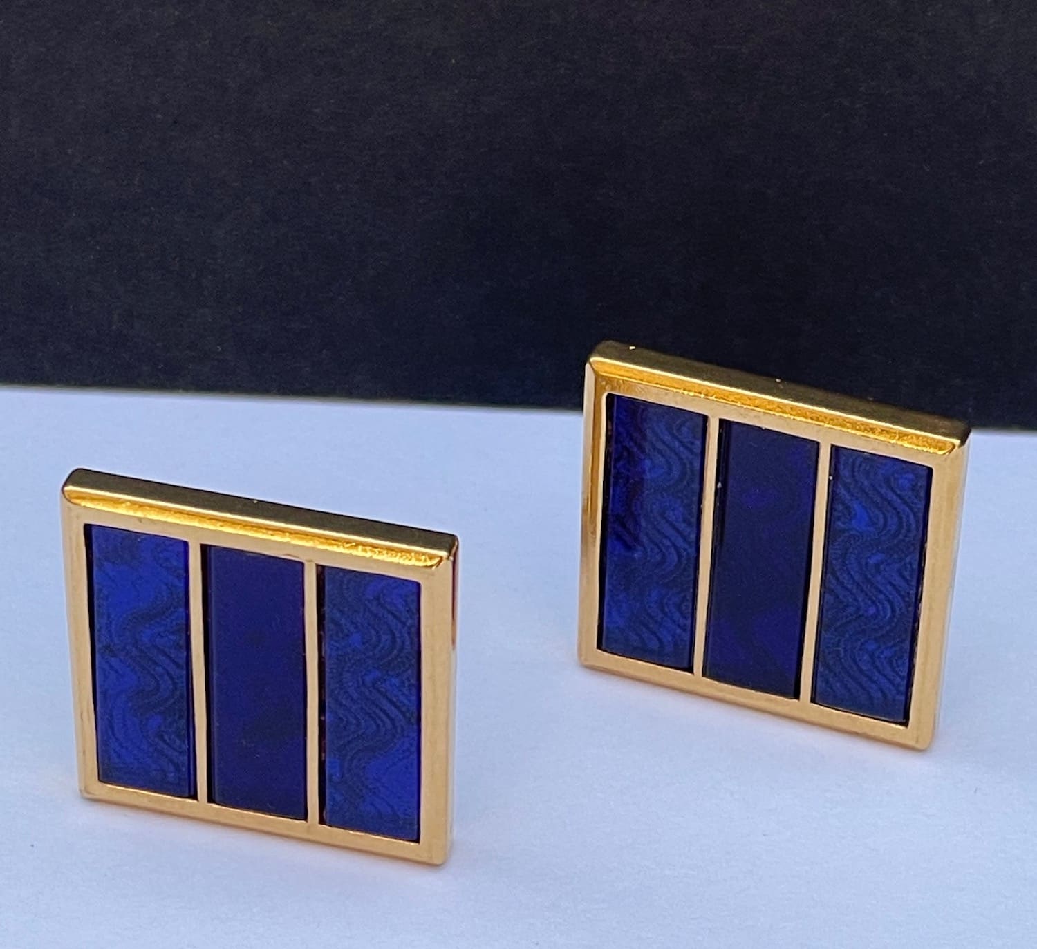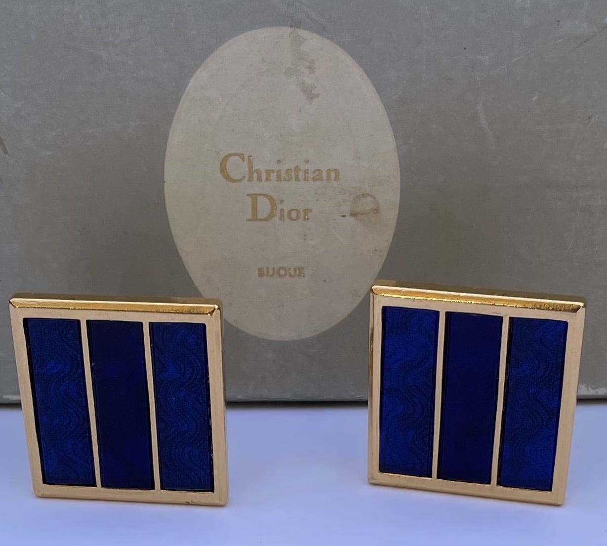 CHRISTIAN DIOR Vintage Gold Plated Oversized Large Blue Earrings C. 1970s-1980