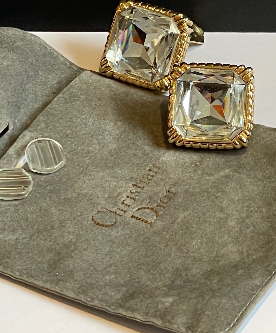 CHRISTIAN DIOR Vintage Large Crystal & Gold Tone Cocktail Earrings C.1980s
