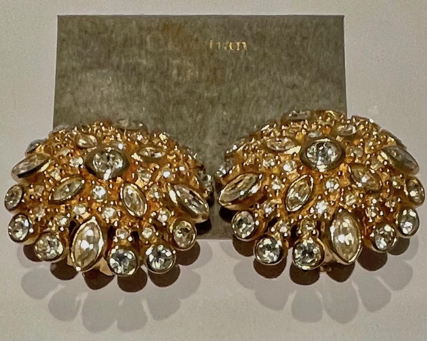CHRISTIAN DIOR Vintage Large Flower Swarovski Crystals Gold Tone Earrings 1980