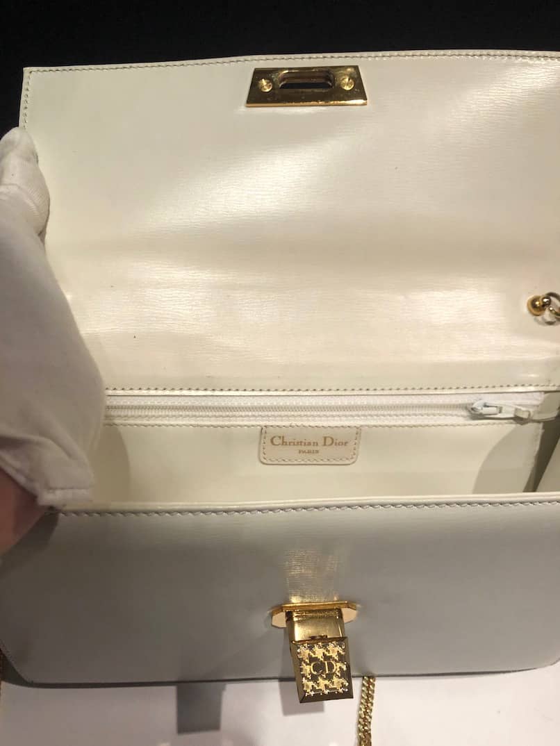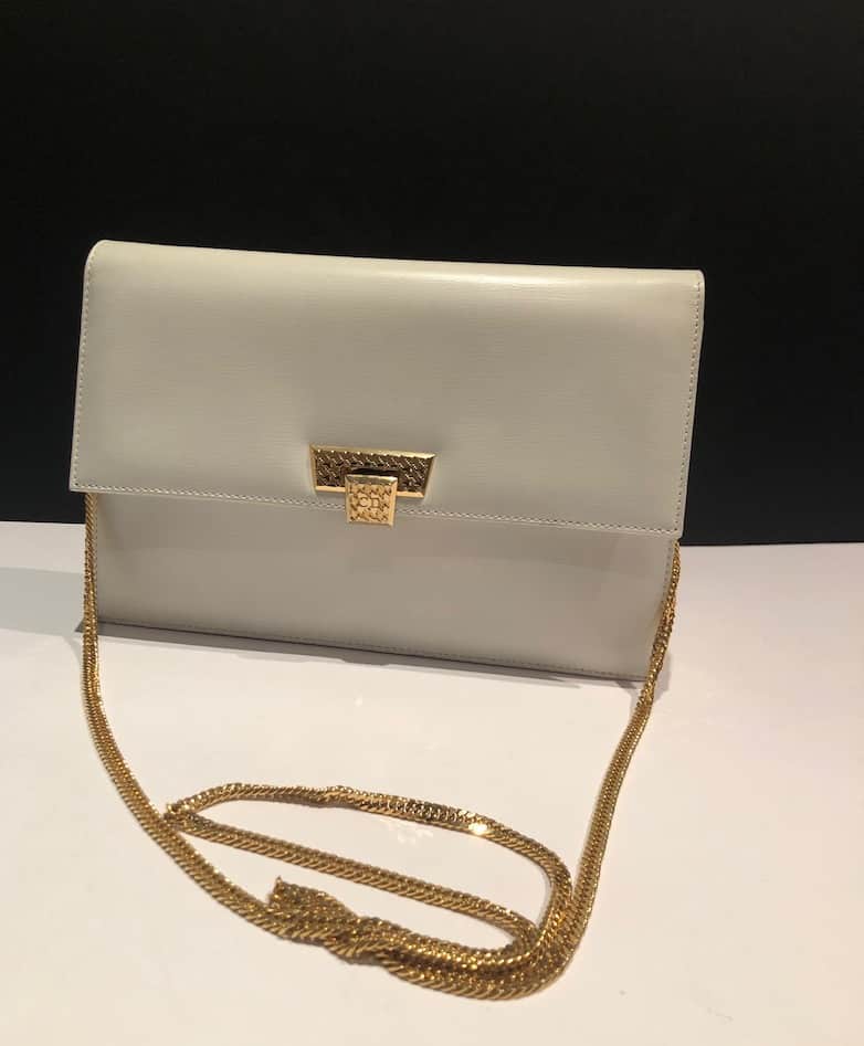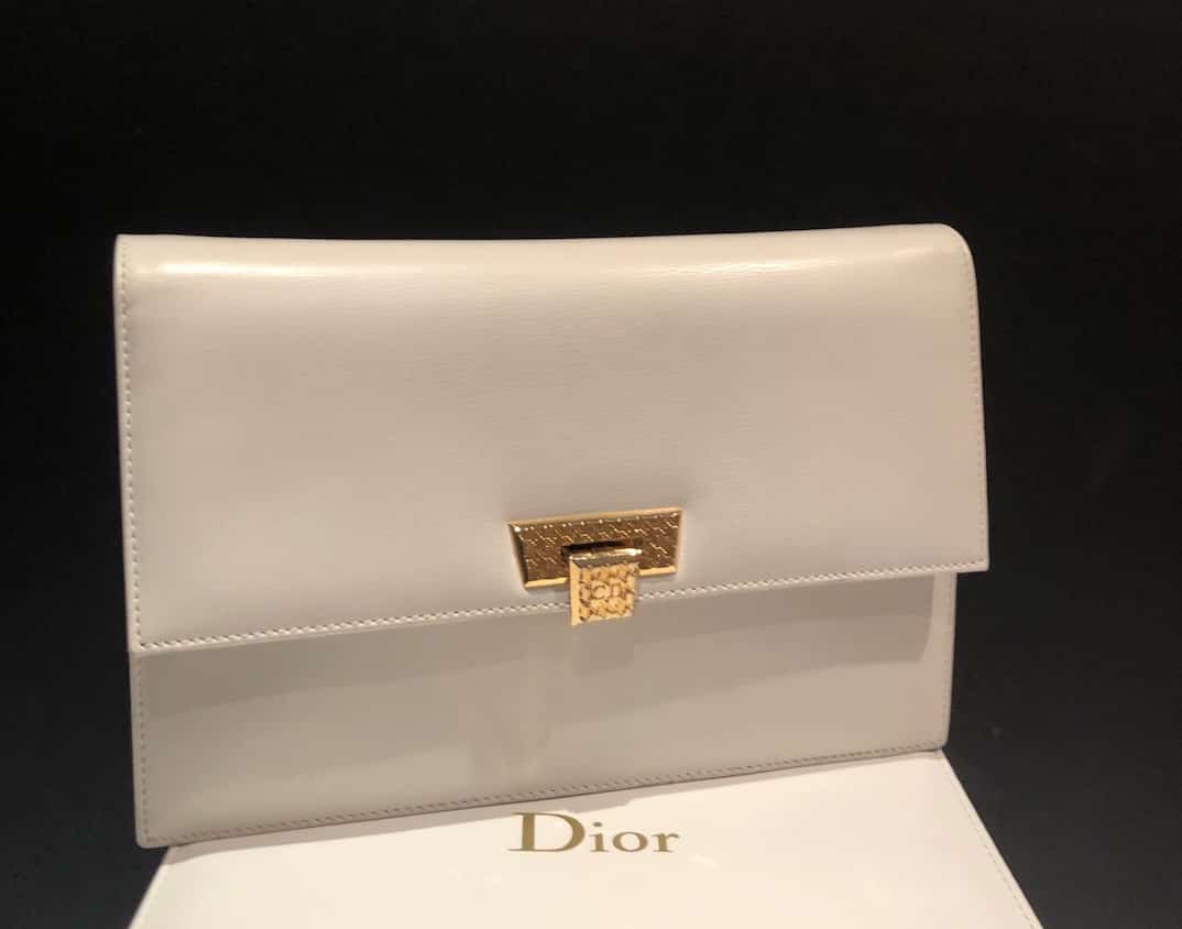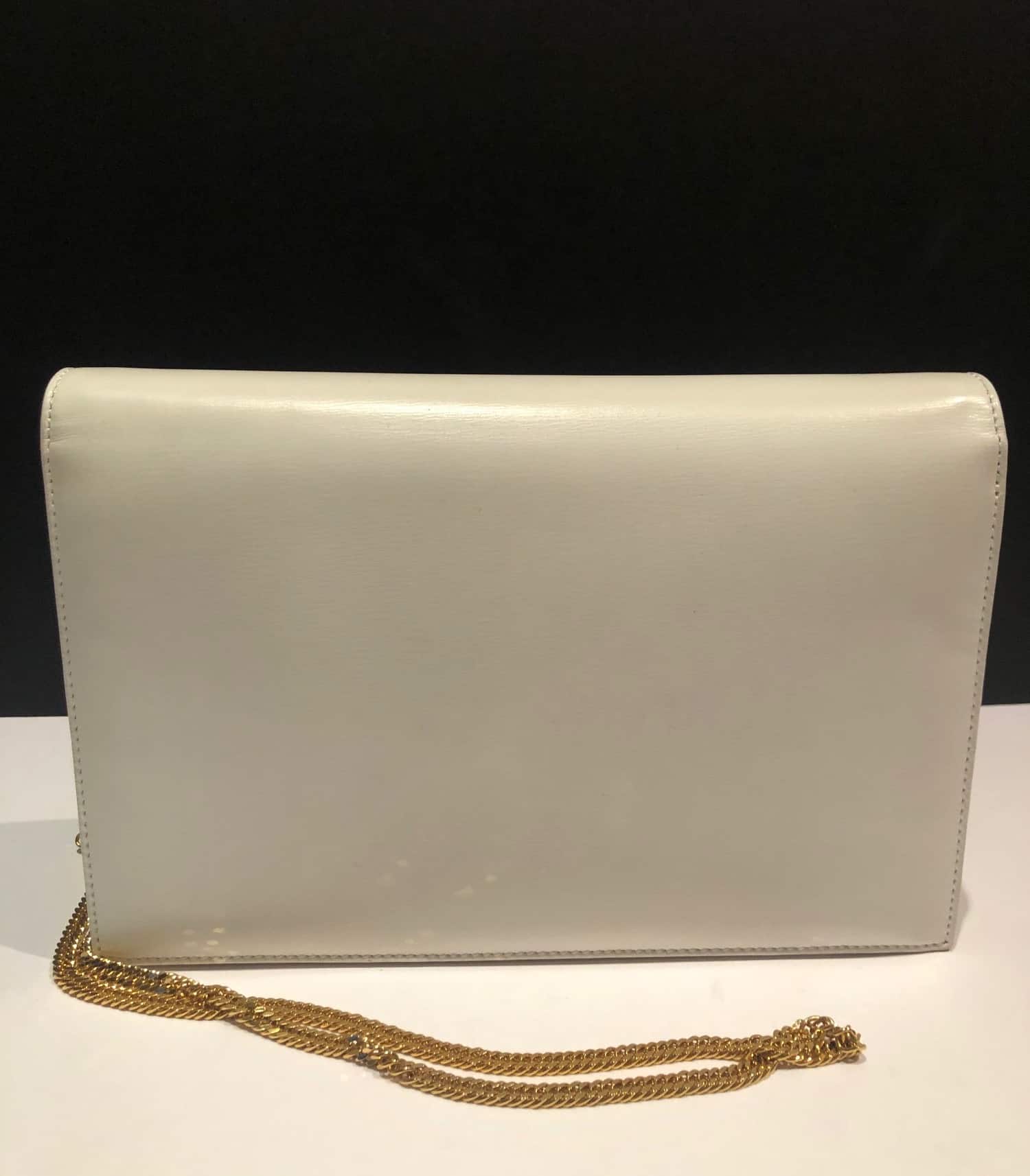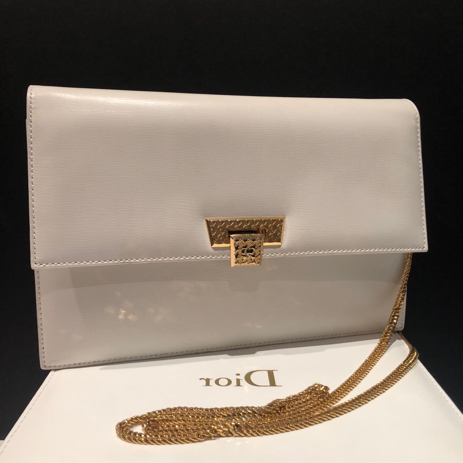 CHRISTIAN DIOR PARIS Vintage Clutch Pouch White Leather Chain-Leather Bag Circa 1980