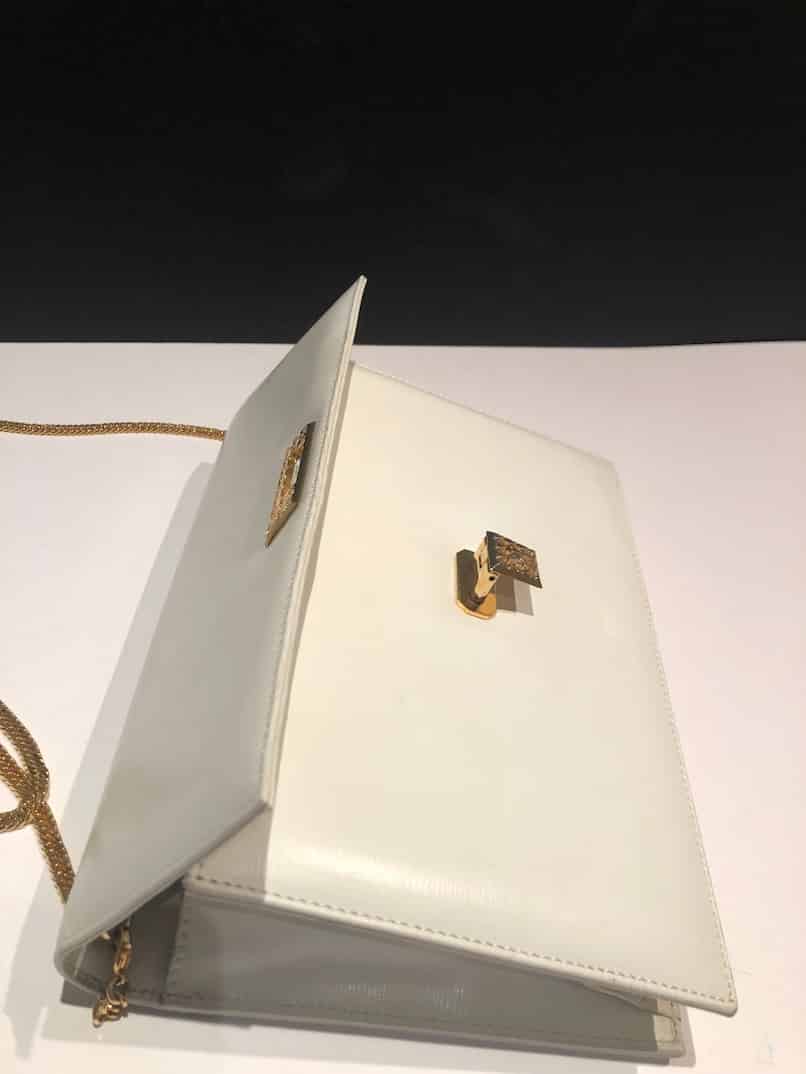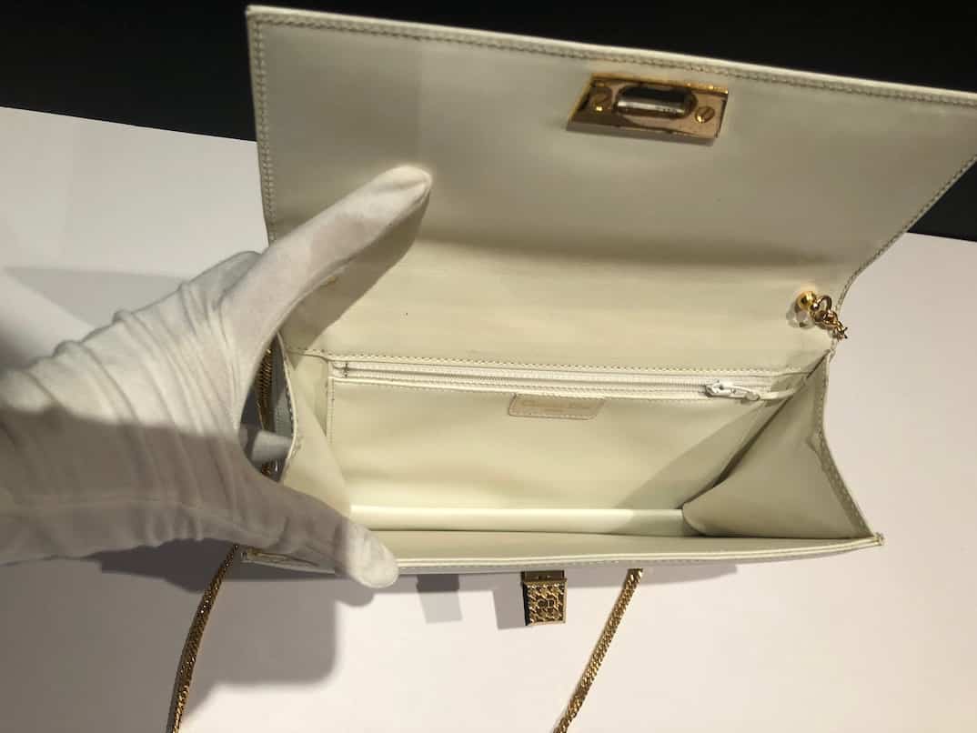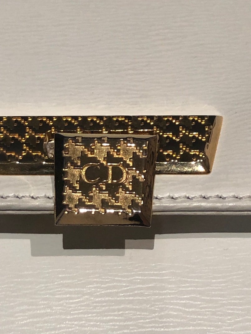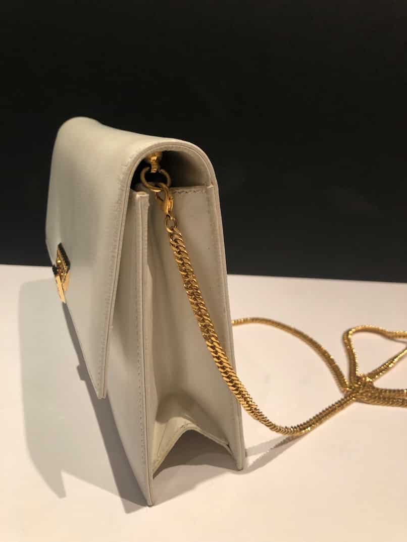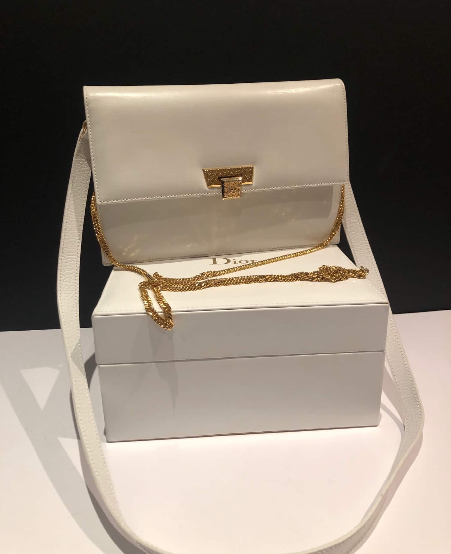 CHRISTIAN DIOR PARIS Vintage Clutch Pouch White Leather Chain-Leather Bag Circa 1980