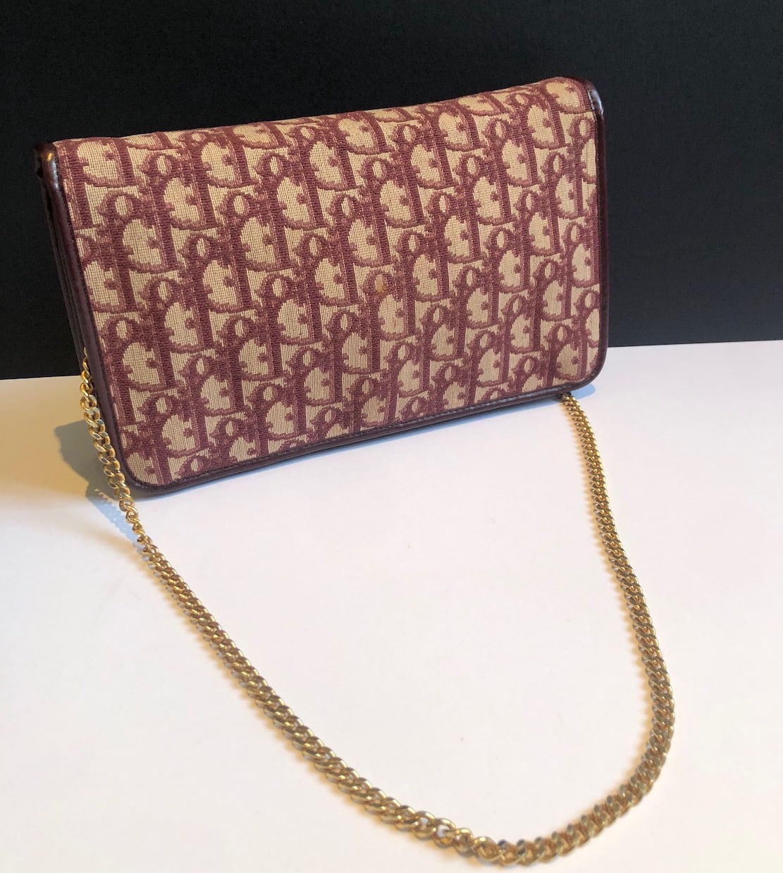 CHRISTIAN DIOR Vintage Monogram Clutch Chain Burgundy Bag C.1970s