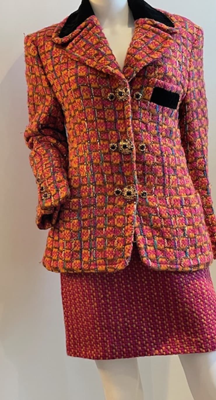 CHRISTIAN LACROIX Vintage Tweed Suit Jewel Buttons Multi C.1990s