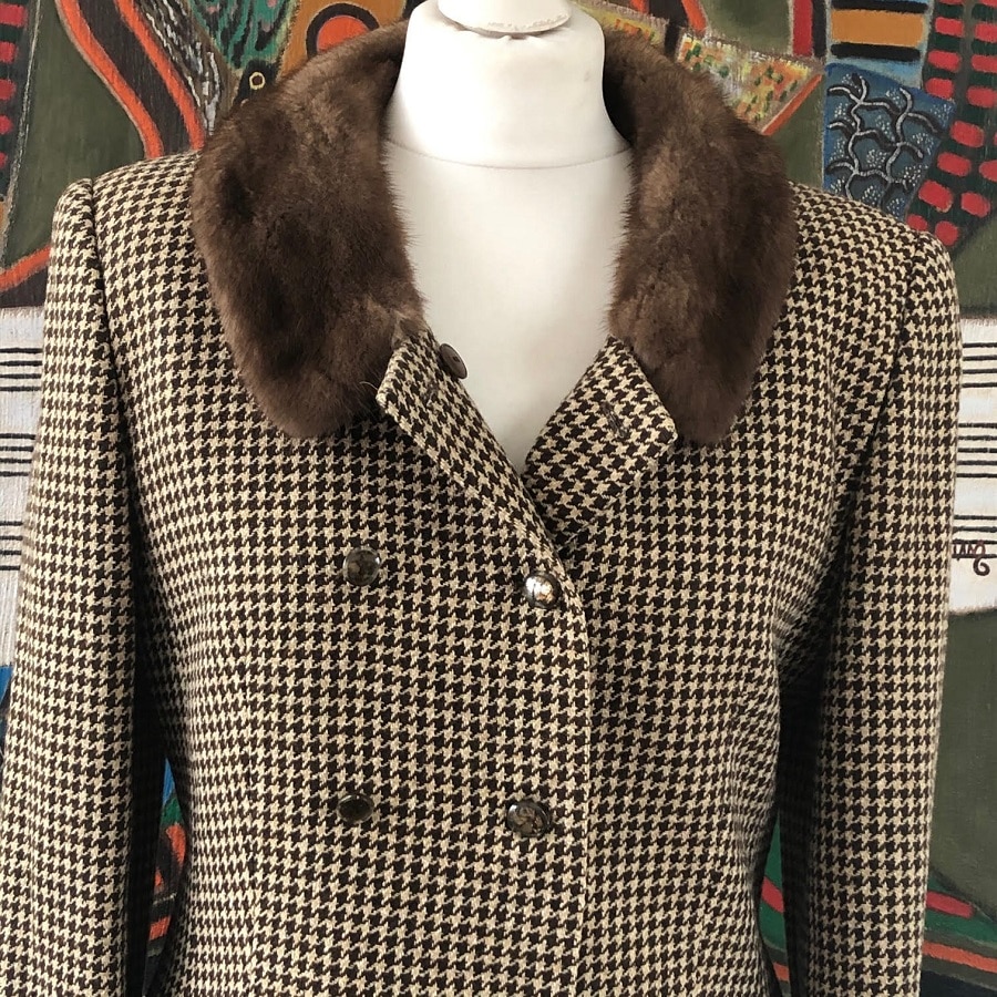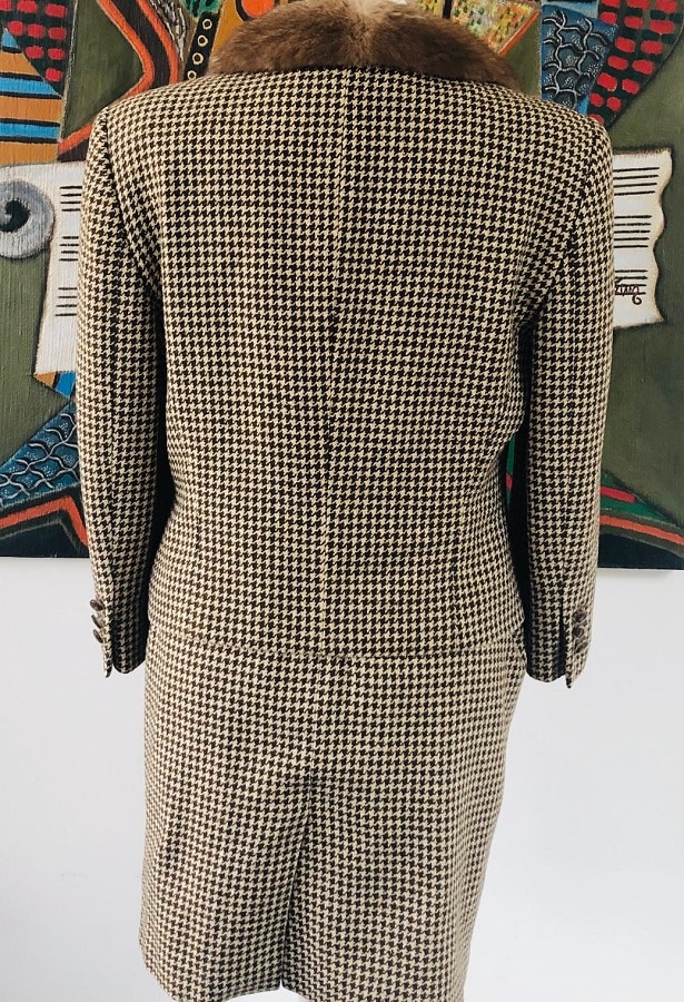 ESCADA Vintage 80s Checked Suit Jacket Skirt Fur Collar Cashmere Emilio Zegna Fabric