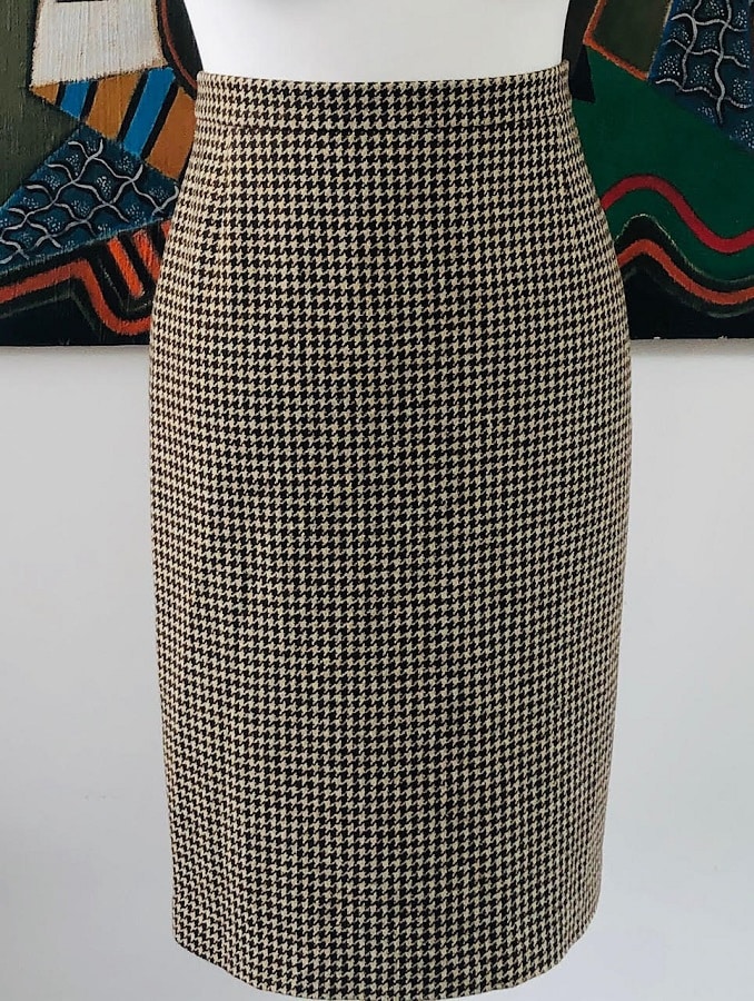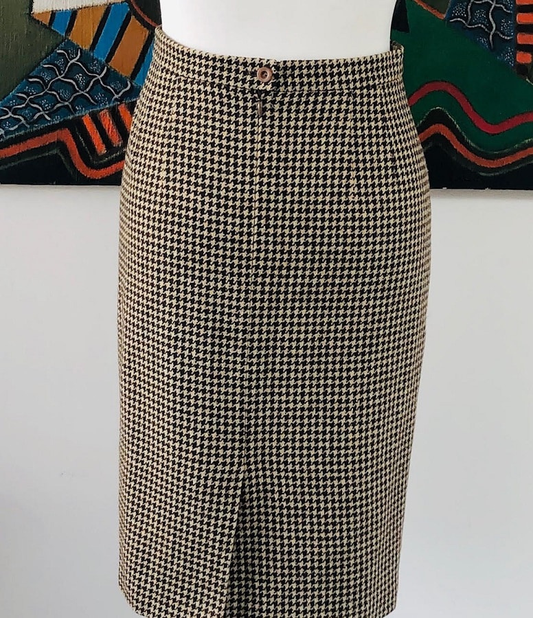 A gorgeous, elegant and a very rare 1980s brown checked skirt suit from Escada. A beautiful long sleeves mid length jacket, brown fur collar with height row of buttons. A fitted pencil skirt with one slit behind, closes with a zip and a single button behind. The suit is lined with a creamy pattern fabric. The cloth is 100% cashmere from Ermenegildo Zegna. It is a very beautiful vintage suit and beautiful feel, ideal for everyday use for this autumn-winter.